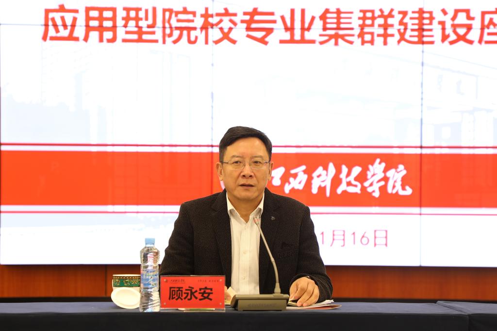 座谈会上,陈辉副校长在主持时代表学校对顾永安教授来校指导工作表示热烈欢迎和衷心感谢。他简要介绍学校的发展历程和基本情况,详细汇报学校学科专业集群建设的现状、目标和特色情况。