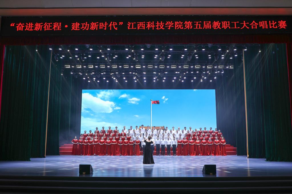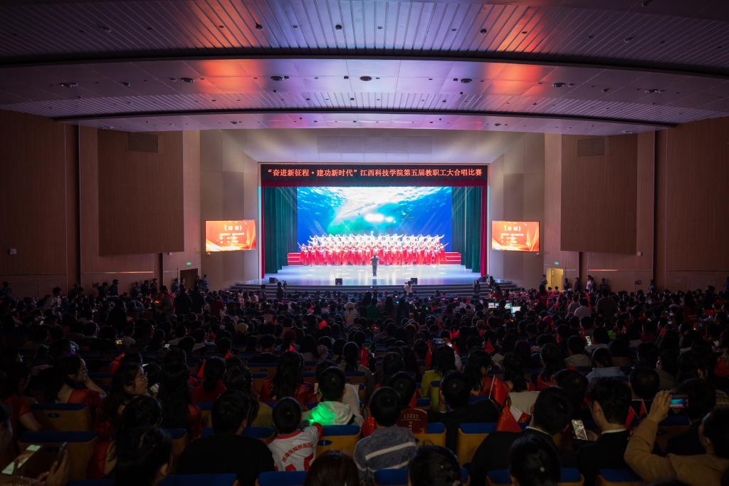 江科网讯(记者 何强江)为庆祝党的二十大胜利召开,凝聚全体教职工上下同心、团结奋斗、勇毅前行的磅礴力量,11月18日晚,我校在蓝海大剧场举行“奋进新征程 建功新时代”第五届教职工大合唱比赛。董事长于果,校党委书记邓弘,副校长陈石俊,副校长、工会主席林素君,校党委副书记、副校长闵桂林,副校长李玮、周冰冰、陈辉,校党委副书记夏拥华等校领导,与1500余名师生代表一同观看这场精彩的视听盛宴。比赛还通过“江科云”、江西科技学院官方视频号进行现场全程直播。