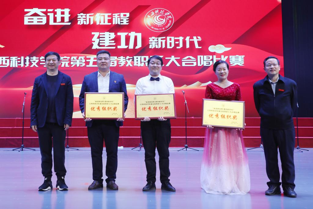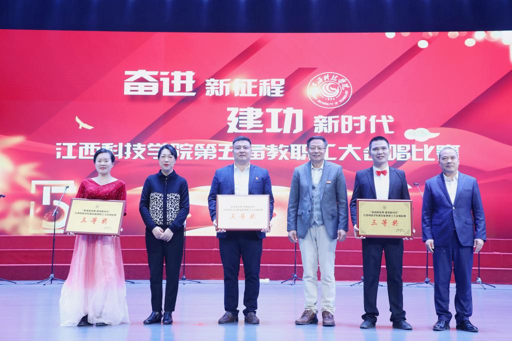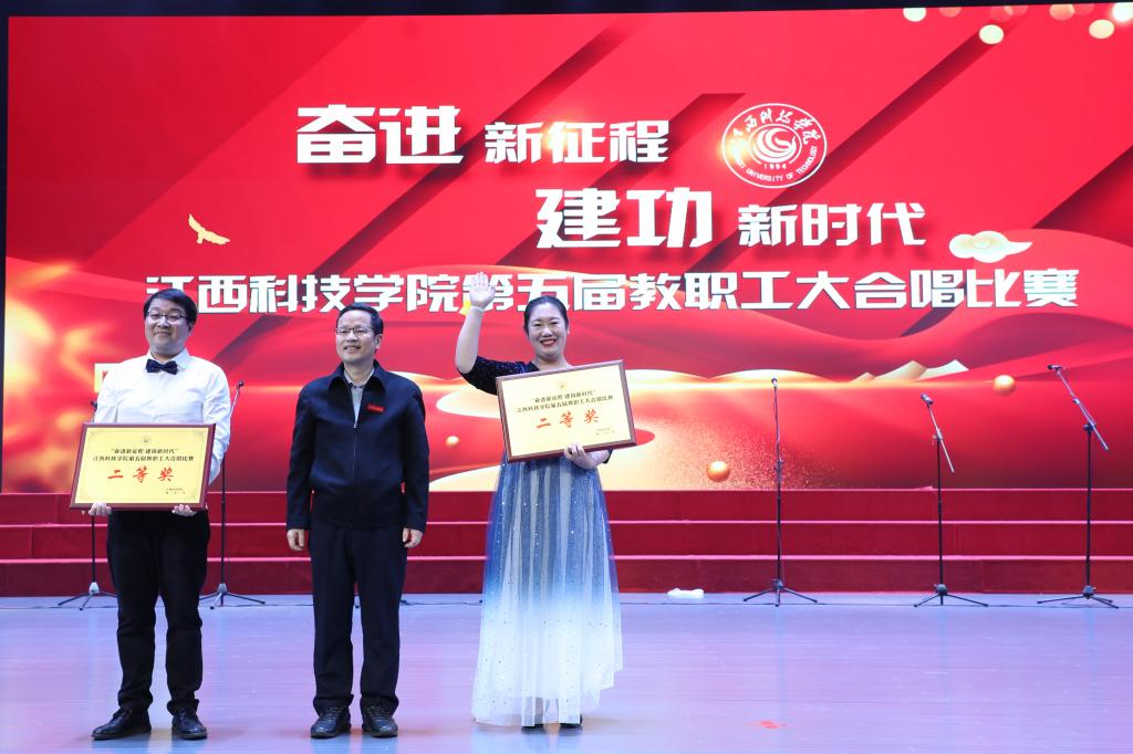 经过专业评委们的认真打分,教育学院合唱团荣获一等奖,党政后勤教辅第三合唱团、艺术设计学院合唱团荣获二等奖,信息工程学院合唱团、外国语(国际教育)学院合唱团、人工智能学院合唱团荣获三等奖,管理学院合唱团、党政后勤教辅第二合唱团、医学院与博雅国际学院合唱团、党政后勤教辅第一合唱团、城市建设学院与体育学院合唱团、文化与传媒学院合唱团、财经学院合唱团荣获优秀奖,艺术设计学院、外国语(国际教育)学院、信息工程学院荣获优秀组织奖。与会校领导为获奖单位颁奖。