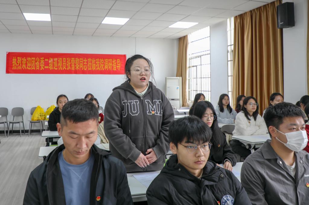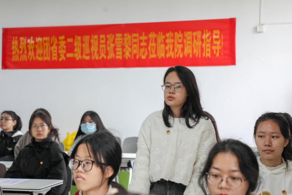 江科网讯(记者 何钰馨)11月16日上午,团省委二级巡视员、副书记张雪黎来校参加外国语学院21本英语2班的主题团日活动。校团委书记马孙亮、副书记李永茂,外国语学院党委书记卞杰、团委书记戴睿一同参加活动。