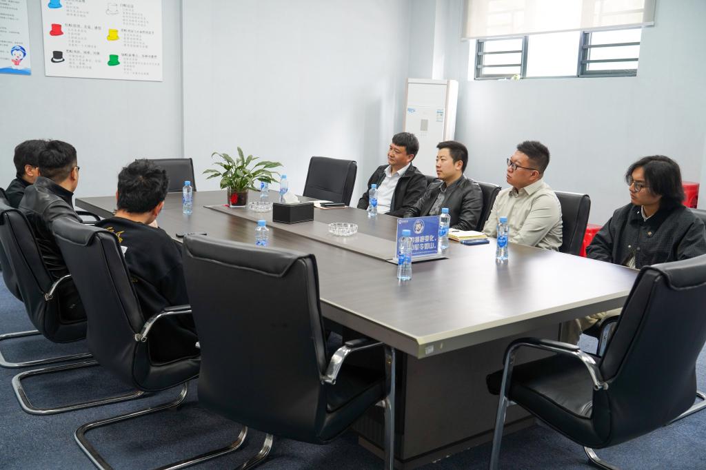 江西省众灿互动科技股份有限公司执行董事长彭建华、副总裁钱从波,江西酷哦科技有限公司副总经理辜文勇热情接待李玮副校长一行,并带领其参观了企业的办公区、摄影棚、直播间、文化墙等区域,就企业的运营模式、发展理念、人才需求等方面进行详细介绍。