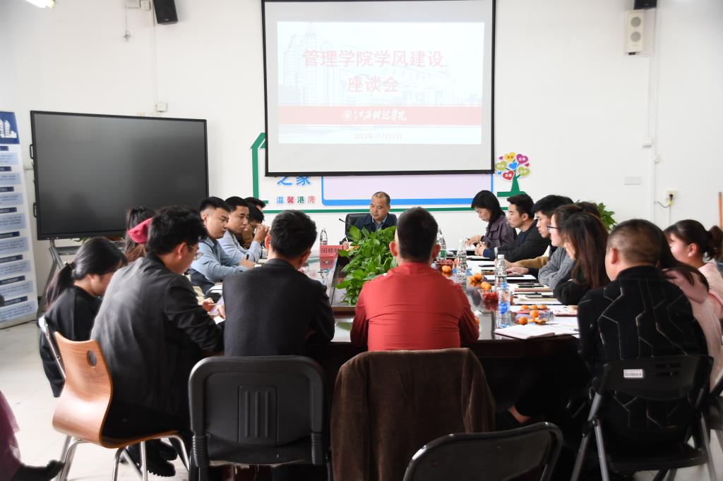 会上,管理学院负责人汇报学院辅导员队伍建设、学风建设等工作基本情况。参会辅导员就加强学风建设工作分享经验体会。