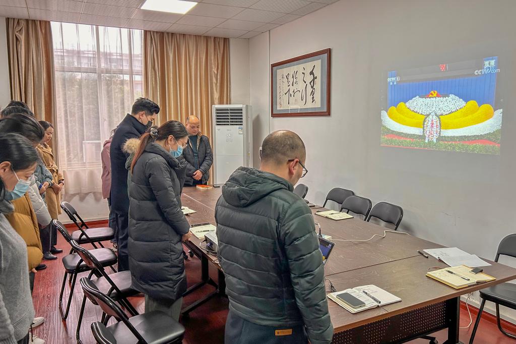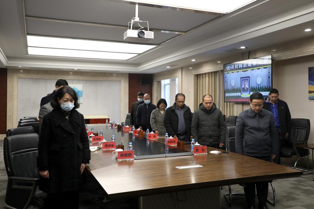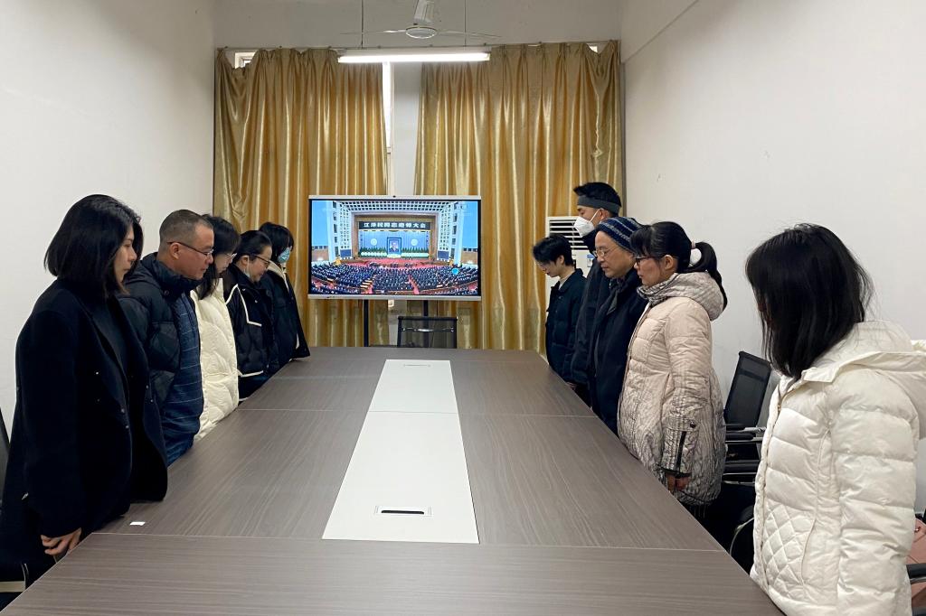 寒风哀鸣,万众同悲。行政南一楼第三会议室内,校党委委员默然肃立,怀着十分沉痛的心情集中收看直播,在庄严肃穆的氛围中向江泽民同志遗像鞠躬致敬、默哀3分钟。随后,聆听了习近平总书记致江泽民同志悼词,深切缅怀江泽民同志的丰功伟绩,颂扬江泽民同志的崇高品质。同一时间,各单位(部门)根据疫情防控有关要求有序组织师生员工收听收看追悼大会。