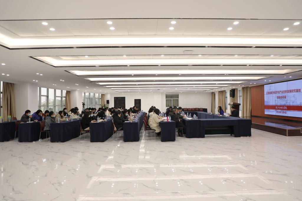 科研处(学科办)负责人介绍江西省数字经济与产业创新发展研究基地申报背景及概况。参会人员就项目申报工作交流意见与建议。
