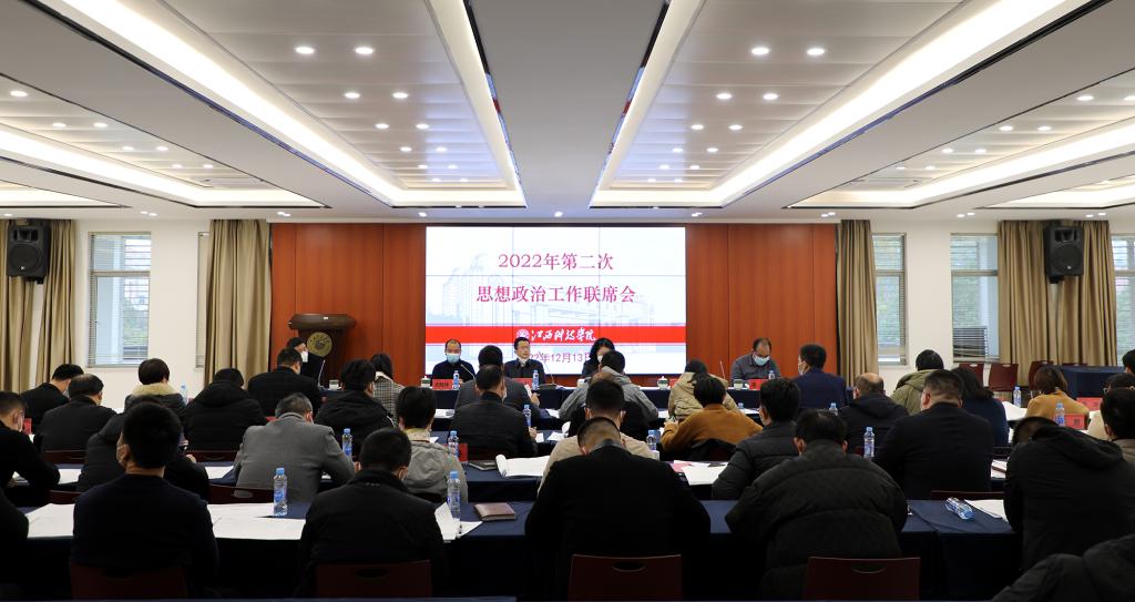 江科网讯(记者 何强江)12月13日下午,我校在行政南三楼会议室召开2022年第二次思想政治工作联席会,部署落实2022年高校思想政治工作测评任务,提升学校思想政治工作质量。校党委书记邓弘,校长张海涛,副校长林素君,校党委副书记、副校长闵桂林,副校长李玮、周冰冰、陈辉,校党委副书记夏拥华出席会议。