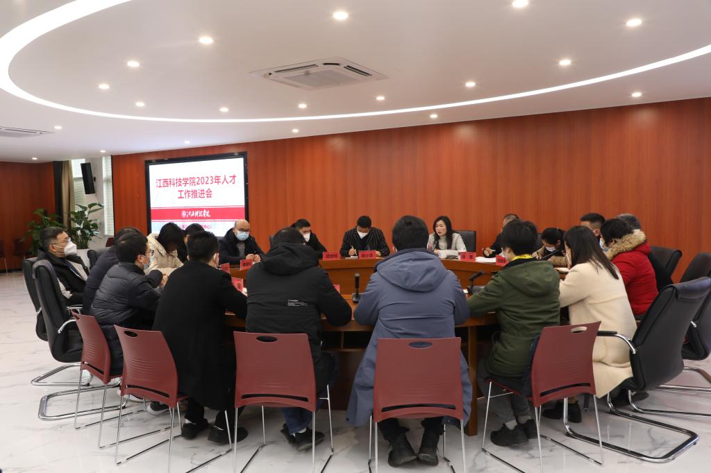 江科网讯(记者 刘莹)1月3日上午,学校在行政南二楼第一会议室召开2023年人才工作推进会。校长张海涛、副校长陈辉出席会议。人事处、教务处负责人,各学院院长参会。