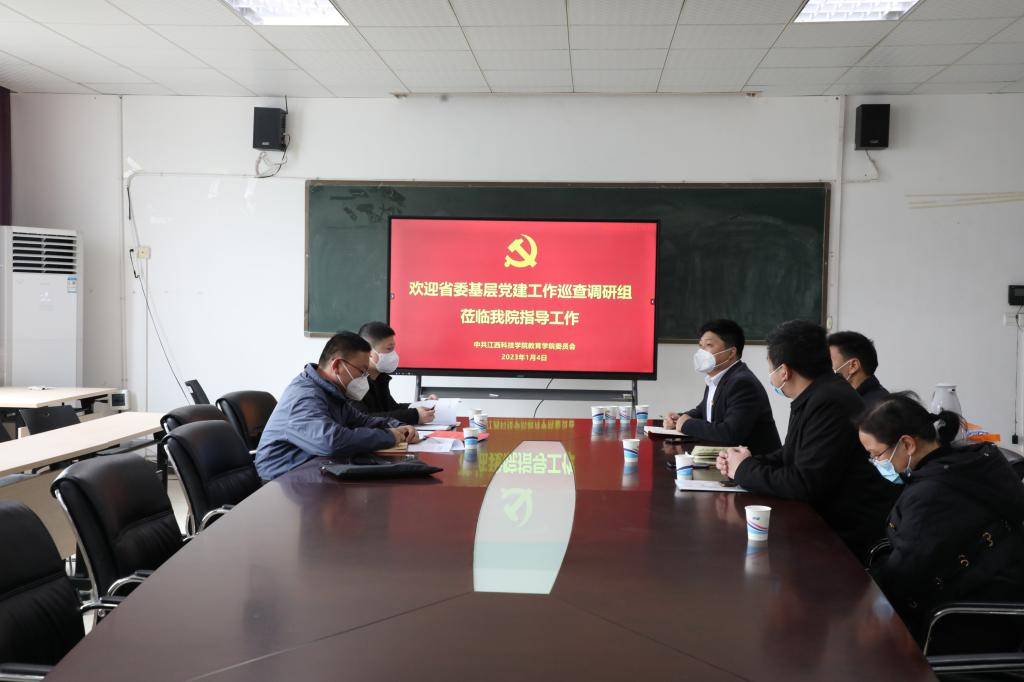 江科网讯(记者 何强江 刘莹)1月4日上午,省委组织部四处一级主任科员李文超,干部熊传其、张继东、周凡一行来校开展2022年度全省基层党建工作巡查调研。我校在职工之家党员活动室举行汇报见面会。校党委书记、督导专员邓弘,校党委副书记、副校长闵桂林,副校长周冰冰、陈辉,校党委副书记、纪委书记夏拥华出席会议。校(党)办、组织部、宣传部、统战部、教师工作部等部门负责同志参加见面会。