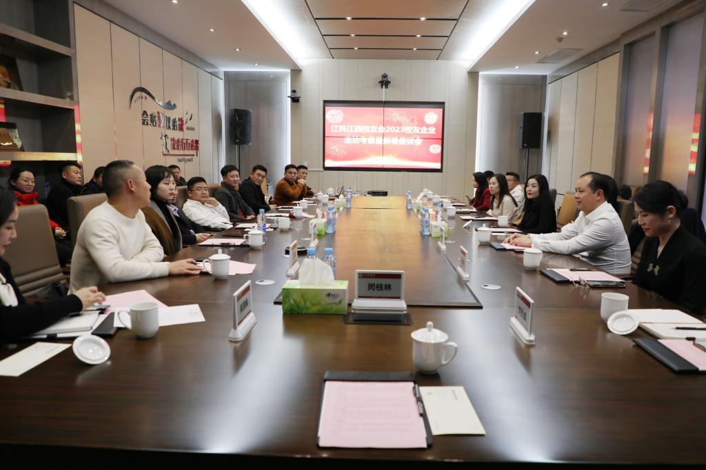 座谈会前,考察队一行先后来到江西蓝鲸汽配有限公司,江西海联生物科技有限公司、江西启康生物科技有限公司,祥瑞集团等校友企业,与校友们亲切交谈,详细了解企业近年来的发展情况,并对其取得的成绩表示祝贺,对创业校友扎根江西服务当地社会经济发展表示鼓励和肯定。