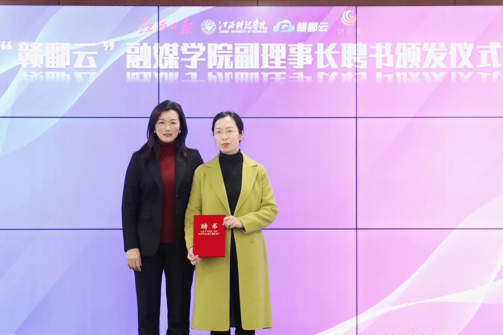 参加聘任仪式的还有江西江报融媒体传播有限公司副总经理鲁建军,江西新闻客户端编委柳禾盛,江西日报社首席记者邵平,江西新闻客户端综合媒拓部主任周莉、运营部副主任任争、业务主管胡俊涛,我校校(党)办、人事处、校企合作处、教务处、科研处等部门负责人及文化与传媒学院相关人员。
