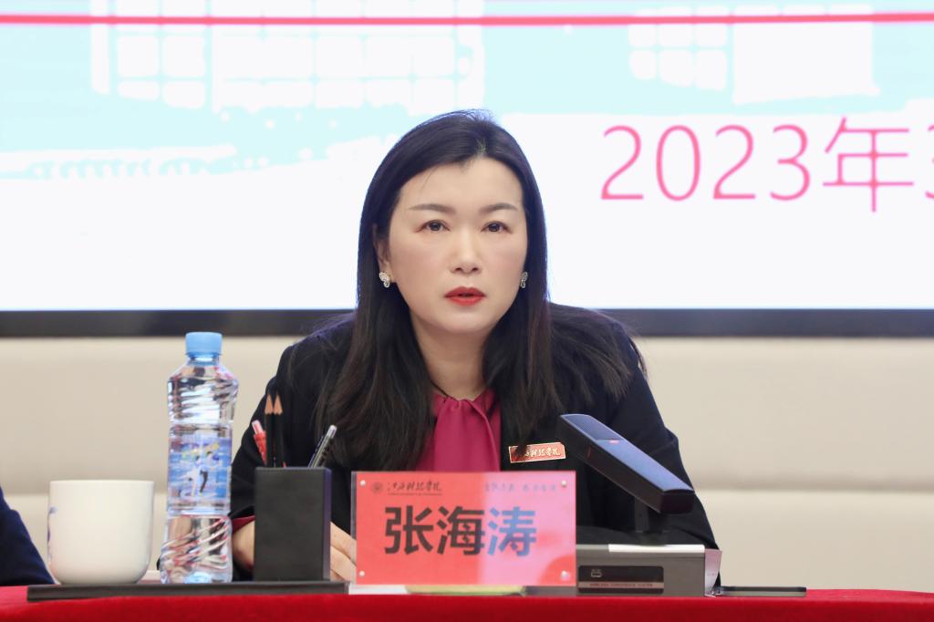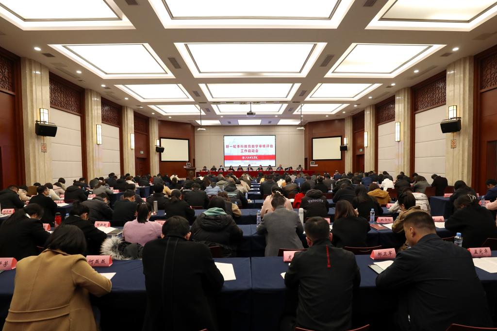 张海涛校长作动员讲话。她指出,新一轮本科教育教学审核评估是对我校2018年通过教育部第一轮本科教学审核评估以来本科教学工作水平、教育教学改革建设和发展成就的一次系统总结,也是对我校教育教学水平、人才培养质量和办学水平的一次全面检验和综合研判。全校上下要进一步统一思想,提高政治站位,充分认识审核评估工作的重要意义。审核评估既是教育部对学校办学的要求,也是学校检验人才培养情况的“试金石”。要进一步深入学习,领会要义,精准把握评估指标体系的内涵要求。各单位、各部门要认真学习、深刻理解本次审核评估工作方案以及指标体系的精髓要义、指标内涵和主要变化点、创新点,根据本轮审核评估提出的新要求,有针对性地做好各项评建工作,高质量、无疏漏地完成审核评估各阶段的工作。要对标对表,查缺补漏,全方位开展自查自评工作。通过自查自评补齐短板,明确下一步发展方向和攻坚重点,着力加强薄弱环节建设,高质量、无疏漏地完成审核评估各阶段的工作。要进一步明确任务,压实责任,全面推进迎评促建工作。各部门、各单位要加强责任传导,形成层层抓落实的良好局面,切实把任务落实到人,真正做到事事有人做、人人有事做。要进一步横纵联动,加强督查,确保审核评估各项工作落到实处。全校师生员工人人都要定好位、站好岗、尽好责,按照学校的统一部署,全校一盘棋,形成强大工作合力,确保审核评估各阶段工作按时按质按量高标准完成。她强调,各单位(部门)要有主人翁姿态,在大事面前敢担当、勇敢当、善担当。全校师生从上到下齐心协力、协同一致共同把各项工作做好,确保2024年审核评估取得一个好的结果,交出一份好的答卷。