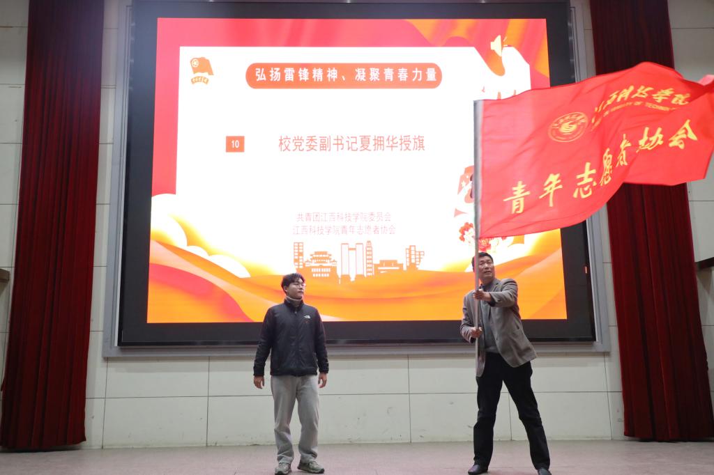 江科网讯(记者 刘莹)2023年是毛泽东等老一辈革命家为雷锋同志题词60周年。为深入学习宣传贯彻党的二十大精神,认真落实习近平总书记对深入开展学雷锋活动作出的重要指示,3月3日下午,我校在报告A厅举行青年志愿者表彰大会暨“3·5学雷锋月”活动启动仪式。校党委副书记、副校长闵桂林出席并致辞,校党委副书记夏拥华为志愿者代表授旗并宣布“学雷锋活动月”正式启动。仪式由校团委书记马孙亮主持。
