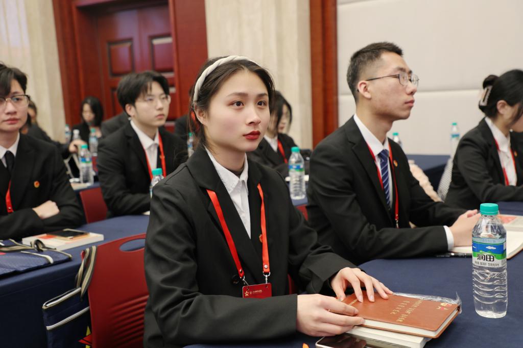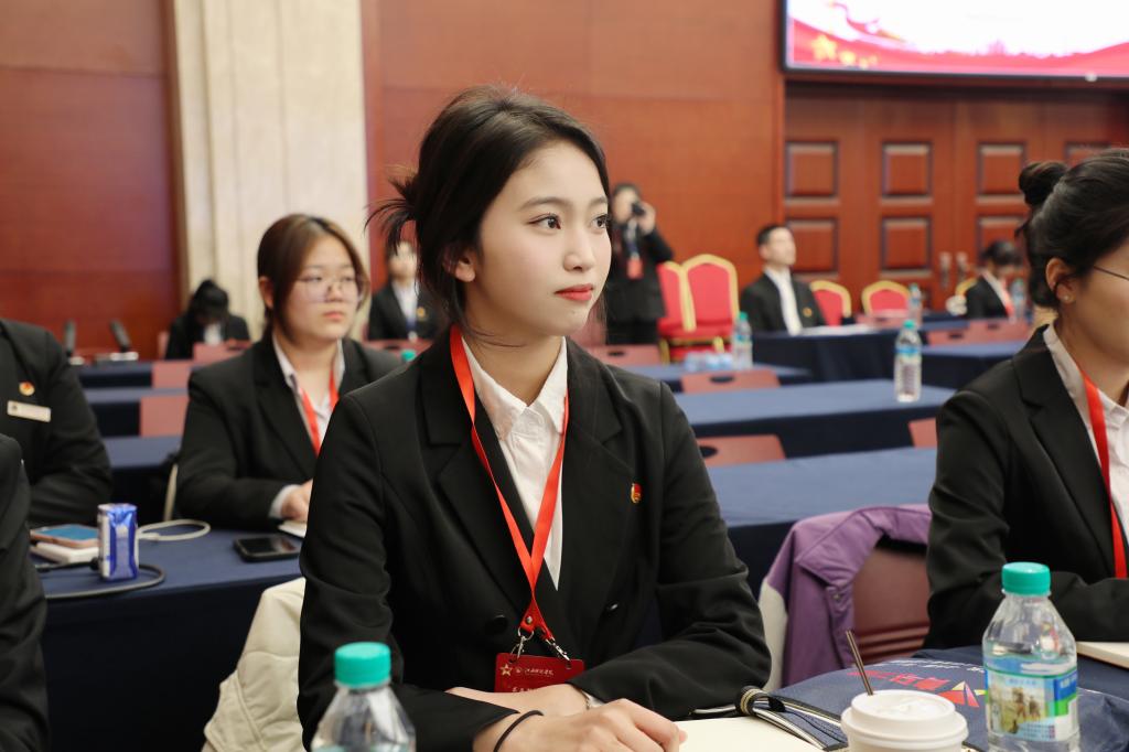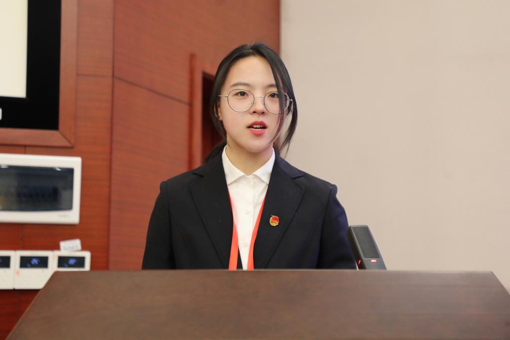 “大骨班”学员代表宋词发言。她代表大骨班全体学员承诺学习期间做到遵守纪律、自我约束,端正态度、明确目标,学以致用、学用结合,不断提升思想政治素养、政策理论水平、创新能力,真正发挥团学干部的应有作用,共同做好学校团学工作。