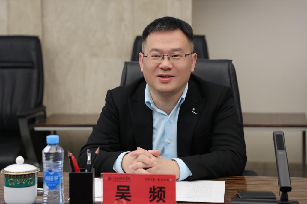 张海涛校长对吴频总经理一行表示热烈欢迎。她表示,此次邀请金蝶公司来校洽谈,目的是深入了解企业、产业、行业人才需求,共同探讨深化校企合作,共建产业学院,打造产教融合培育人才新模式的可行性。她指出,江科发展速度快、学生规模大、专业涵盖面广,目前正朝着培养全面的、企业真正需要的应用型人才目标稳步迈进。金蝶公司系统、完善的校企合作模式,为合作提供了坚实的基础,期待未来双方不断加强沟通联系,共同打磨合作细节,完善合作模式,通过共建产业学院,带动学校传统专业升级迭代,推动学校整体数字化转型,打造具有辐射性的、有代表性的校企合作样板,为推动地方经济跨越式高质量发展作出更大贡献。