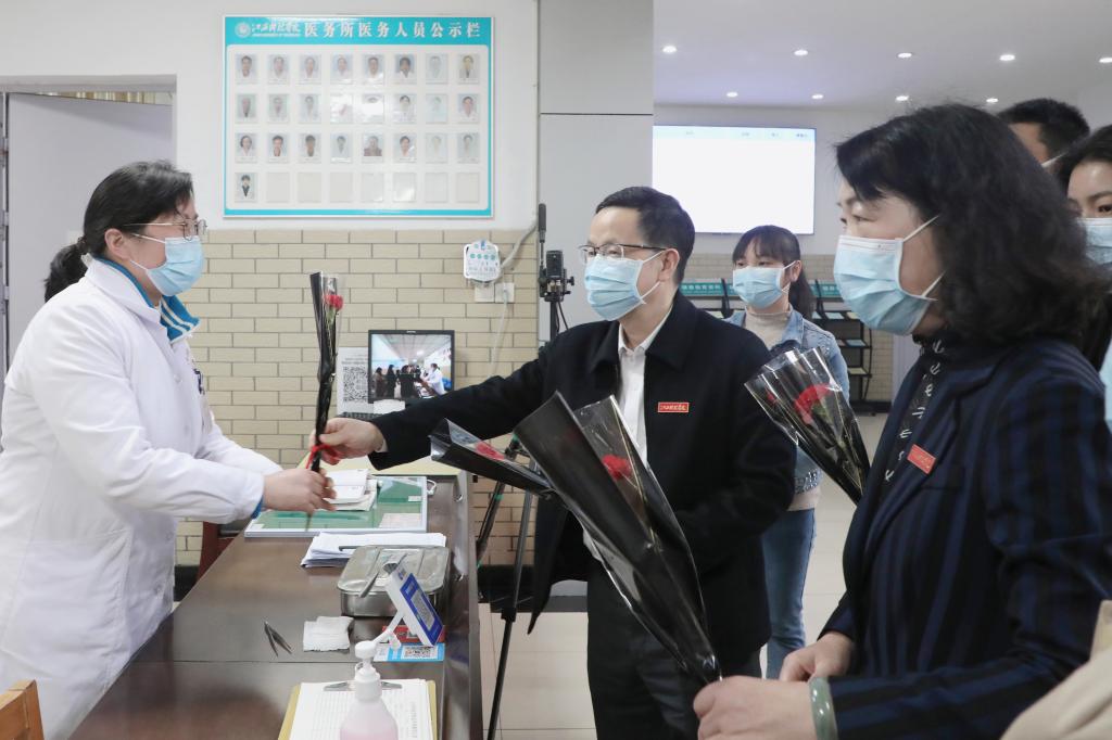 江科网讯(记者 何强江)“辛苦了,祝你节日快乐!感谢你为学校作出的贡献。”“我们学校的‘她力量’撑起了‘半边天’,必须给一个大大的赞!”春暖花开时节,我们迎来了第113个“三八”国际劳动妇女节。当天,校党委书记邓弘,副校长、工会主席、妇联主席林素君带领工会、妇联干部走访慰问节日坚守在一线的女教职工代表,为她们送上鲜花和饼干,并通过她们向全校女教职工致以节日祝贺和诚挚祝福。
