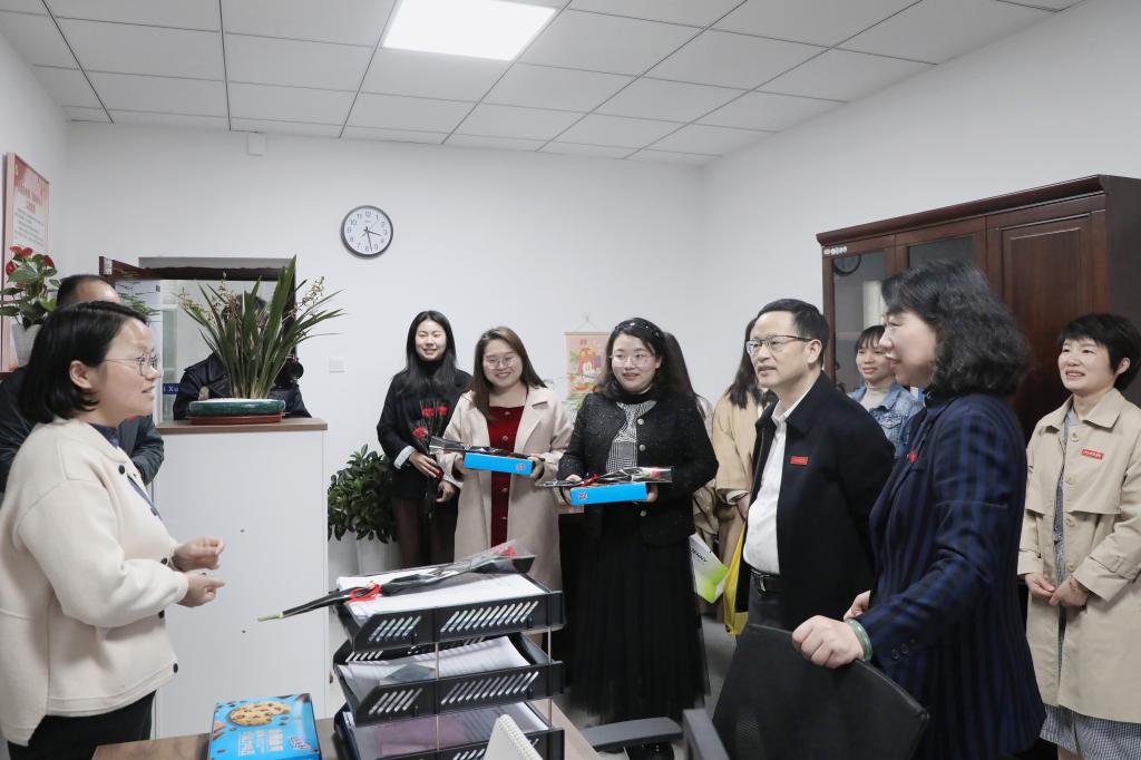 慰问过程中,邓弘书记、林素君副校长与女教职工亲切交流,表示女教职工在学校教书育人、文化传承、管理服务等方面有位有为,希望广大女教职工在今后的工作中继续激扬巾帼之志、凝聚巾帼之力、彰显巾帼之美,找准个人事业发展与学校建设发展的结合点、切入点、着力点,以更加自信的姿态、更加饱满的精神,为推进学校高质量发展贡献巾帼力量。