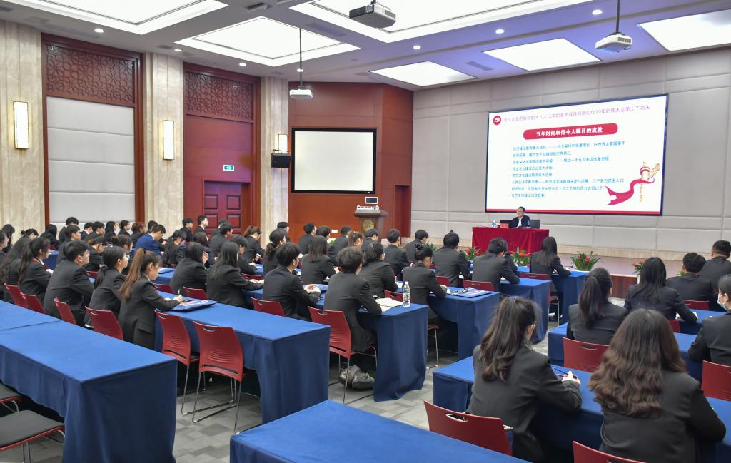 邓弘书记指出,2023年是全面贯彻落实党的二十大精神的开局之年,广大师生要深刻领悟“两个确立”的决定性意义,全面推进学习宣传贯彻落实党的二十大精神走深走实,努力在新学期新征程上开创发展新局面。他指出,《中共中央关于认真学习宣传贯彻党的二十大精神的决定》深刻阐述了学习宣传贯彻党的二十大精神的重大意义,用“九个深刻领会”鲜明指出学习领会党的二十大精神需要着重把握的方面,用“七个聚焦”明确提出学习宣传党的二十大精神的着力点,对学习宣传、贯彻落实党的二十大精神作出全面部署、提出重要要求,为我们进一步全面、系统、深入学习,切实用党的二十大精神武装头脑、指导实践、推动工作提供根本遵循。
