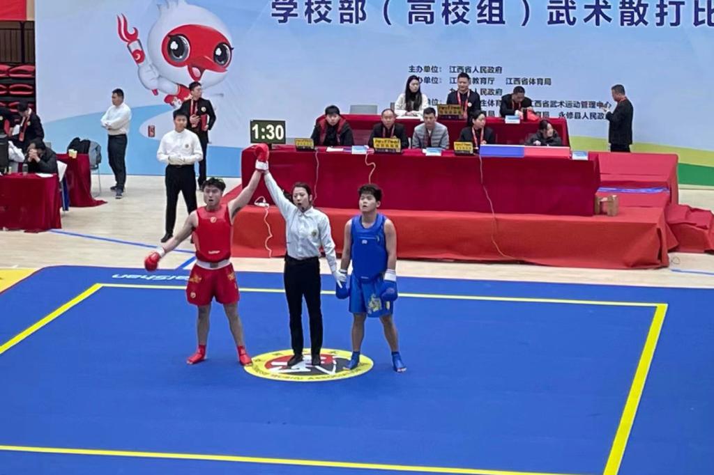 江科网讯(通讯员 刘胤)日前,江西省第十六届运动会学校部(高校组)武术散打比赛圆满帷幕。在为期3天的比赛中,参赛运动员们以武会友,大展拳脚,进行技能与力量的比拼。比赛精彩纷呈,充分展现武术散打的魅力和新时代大学生们敢打敢拼、蓬勃向上的良好精神面貌。