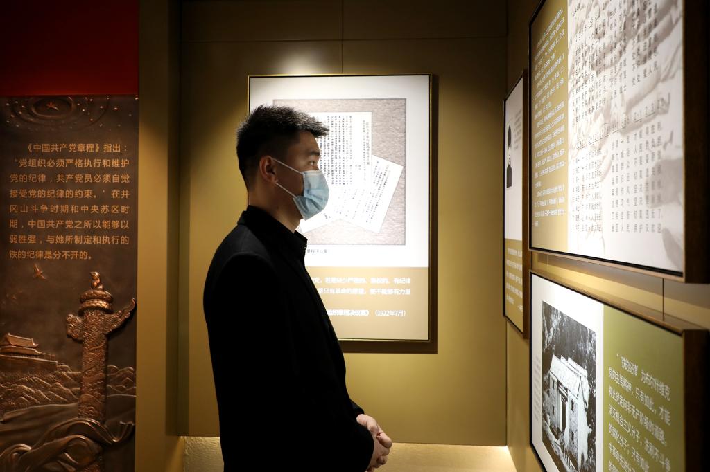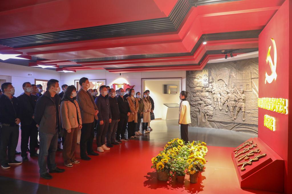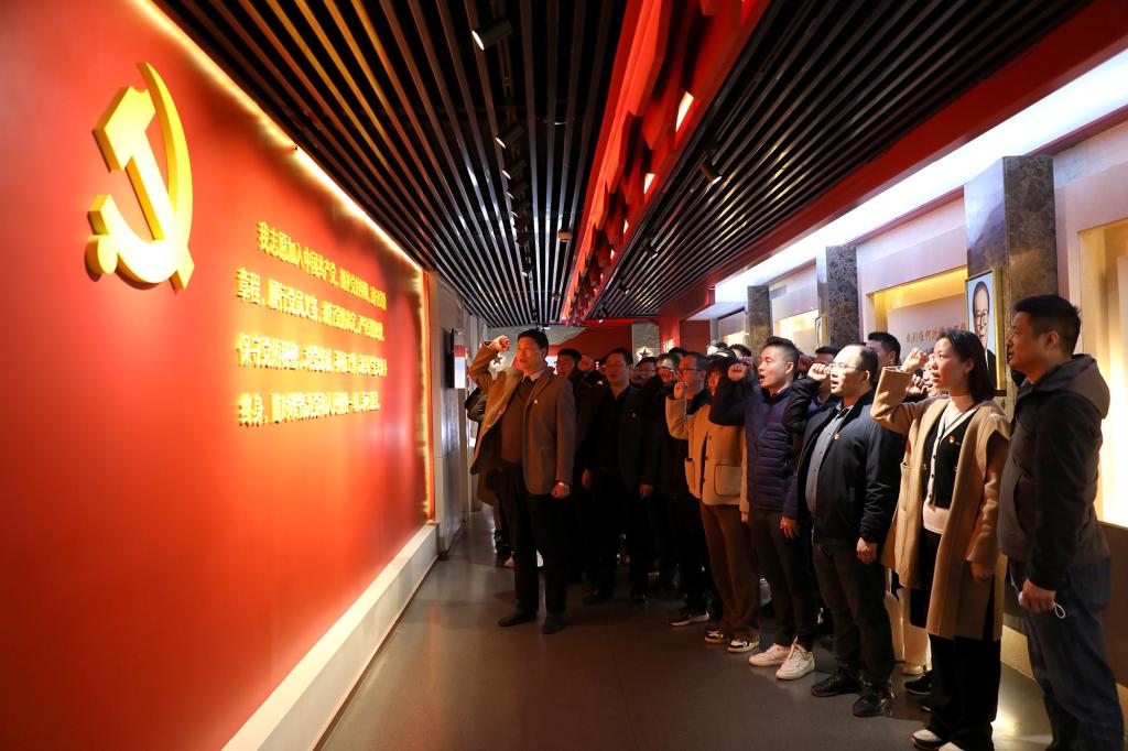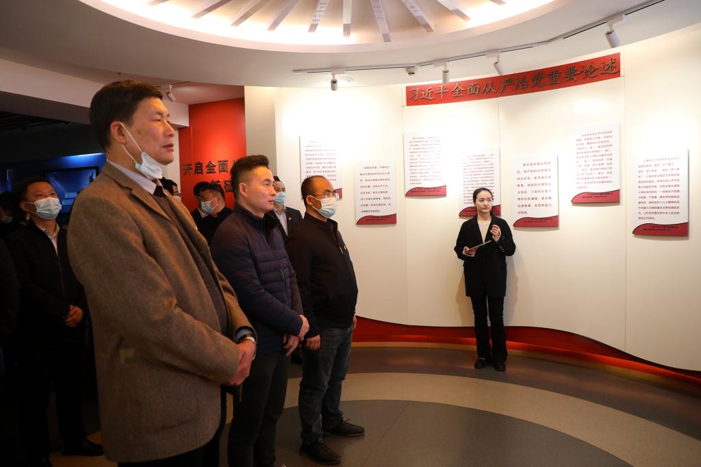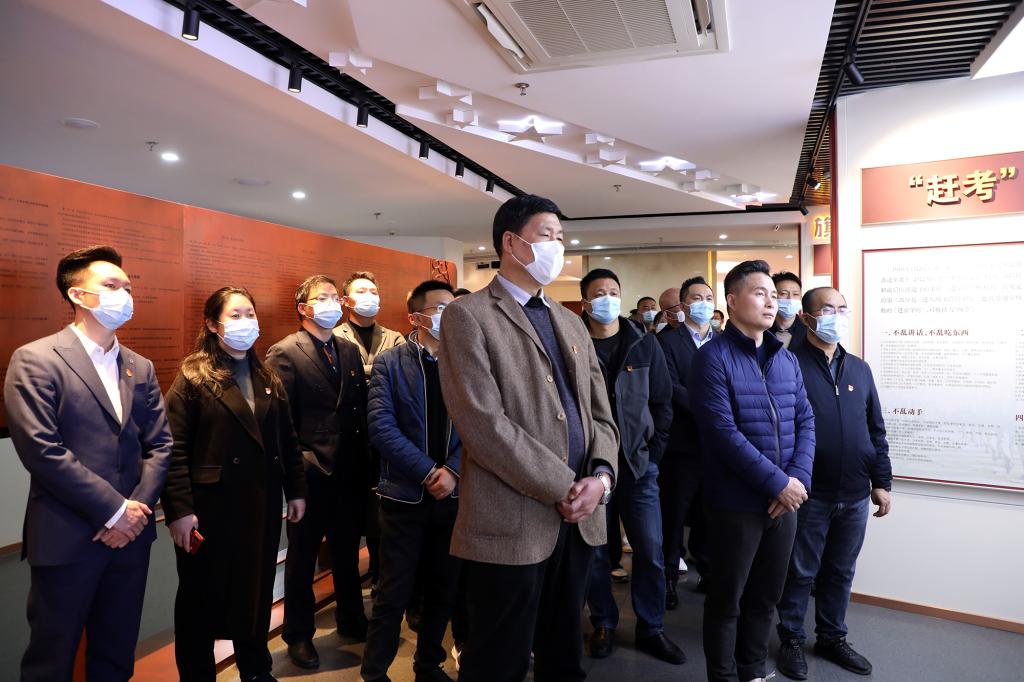 在解说员的引导下,我校党员干部先后参观了红色基因教育和党纪教育两大展厅。其中,红色基因教育展区以正面教育为主,分为“红色基因的孕育”和“红色基因的传承”两部分。党纪教育展区主题为“光耀‘赶考’路”,分别由“旗帜篇”“纪律篇”“先锋篇”“警钟篇”四个部分组成。大家通过聆听讲解、观看图文介绍、沉浸式欣赏影音资料等方式,系统了解党中央1949年“进京赶考”的光辉历史和我省红色基因从孕育到传承的光荣历史,全面回顾党的纪律建设史上的大事件和我省推动全面从严治党向纵深发展的生动实践。一个个触目惊心的反面典型案例,让大家更加深刻体会到把纪律建设摆在更加突出位置的重要性,更加深刻领悟到加强自我管理、增强自律意识的必要性。最后,在夏拥华副书记的带领下,大家在教育馆内的宣誓墙前,重温入党誓词。大家精神昂扬、铿锵有力的齐声宣读誓词,彰显不忘初心牢记使命,永葆对党忠诚的决心。