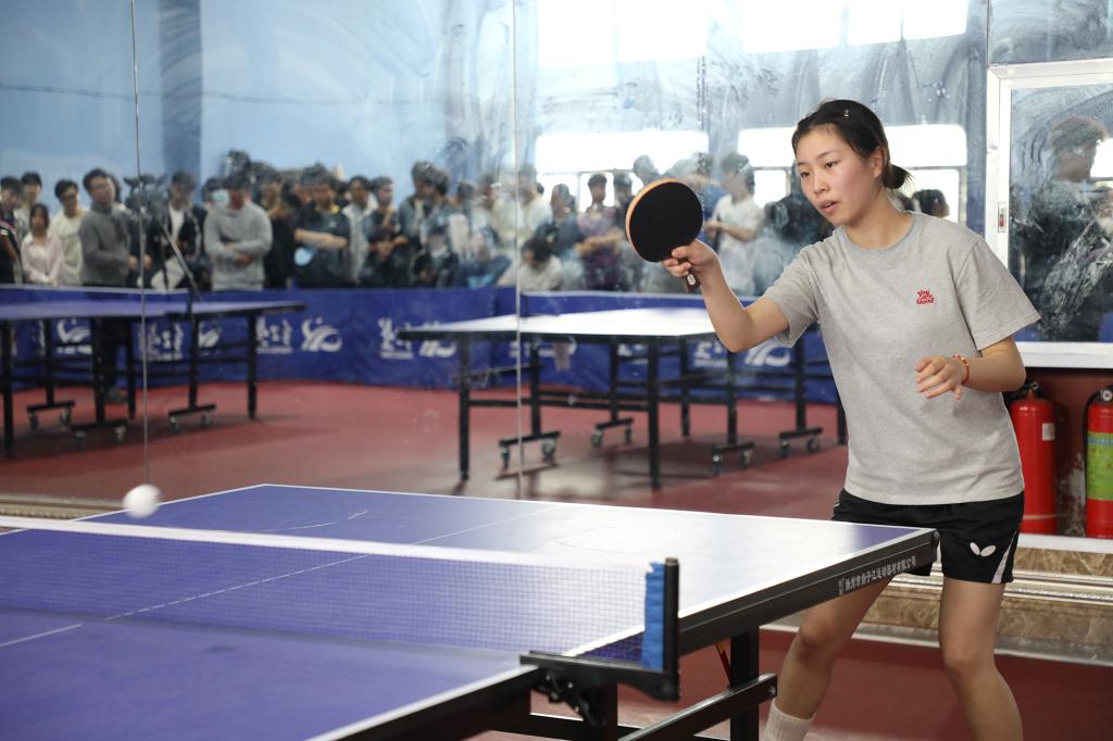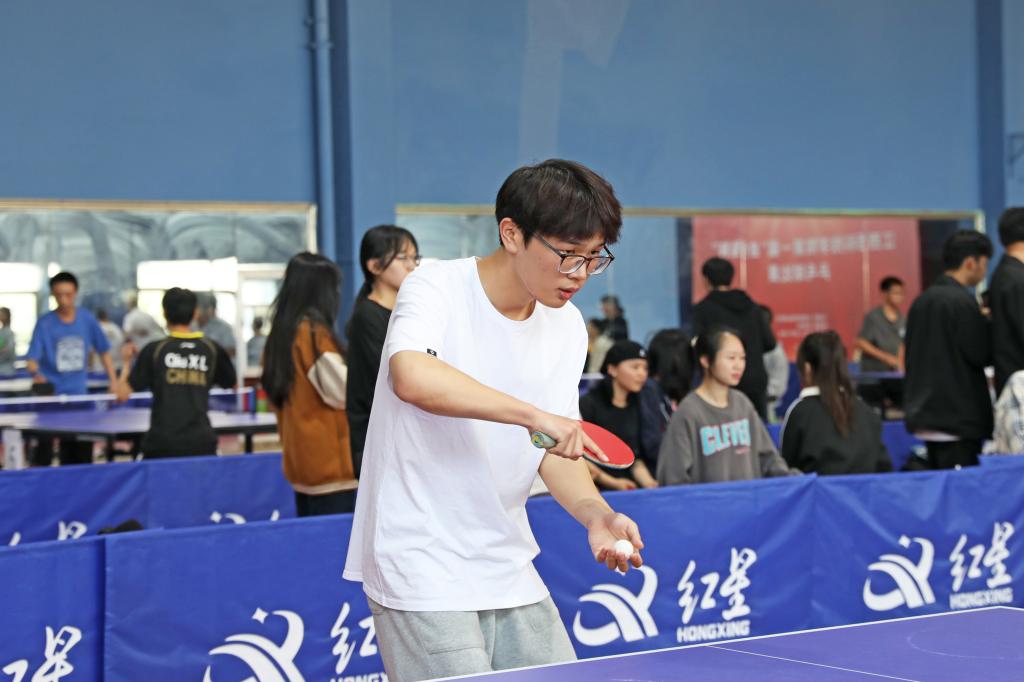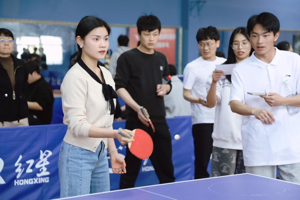 31日下午,比赛在雄壮的国歌声中拉开帷幕。校长张海涛,副校长林素君出席开幕式并为比赛开球。开幕式后,校领导与参赛选手们进行热身训练,攻球、推挡、拉球……动作行云流水,赢得观战师生的不断喝彩。正式比赛中,选手们个个精神饱满,挥汗如雨、积极拼搏,上步搓球、侧身进攻、后退拉球、大力扣杀,一个个回合的精彩对决,充分展示了江科师生昂扬向上、积极进取的精神风貌。