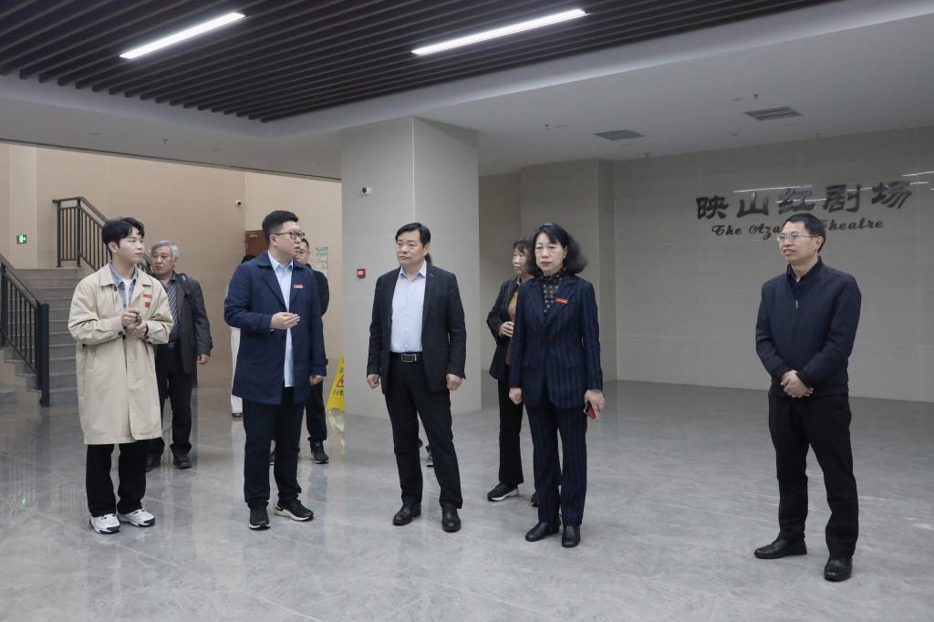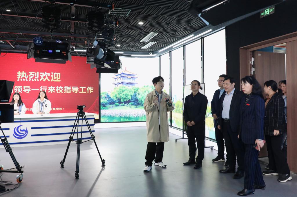 座谈前,李仕桀副总裁一行实地参观了文化与传媒学院、映山红剧场、赣鄱云融媒学院、江科云智慧融媒全景交互式演播室、江科云智慧融媒直播基地、湖畔艺术中心等地,并认真听取相关介绍。