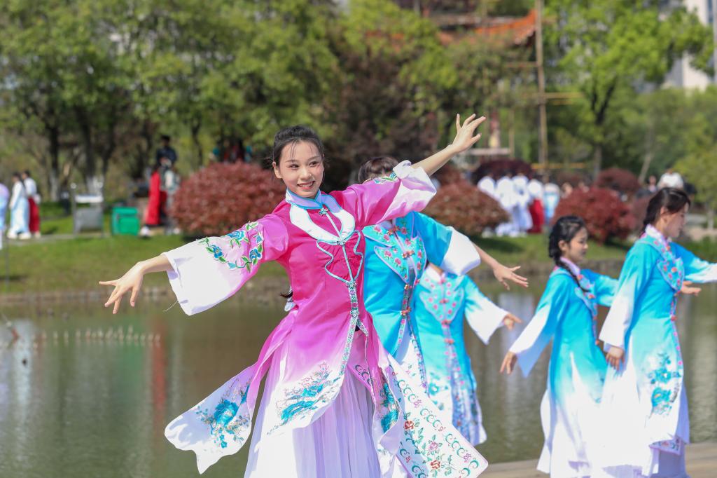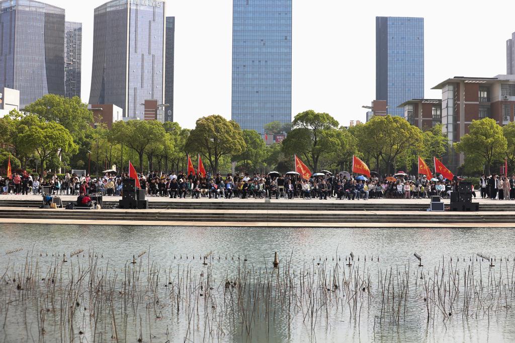 活动当天,校党委书记邓弘,校党委副书记、副校长闵桂林与宣传部、校团委、资助管理中心等部门负责人及学院党委书记、学生代表一同在临水广场欣赏国风盛宴。蓝天阁下,临水湖畔,《踏水舞》《兰亭序》《知否知否》《芒种》《渡情》《海底》《“武”动青春》《布里亚特舞曲》《蝴蝶与蓝》《越人歌》《古兰朵》《山歌好比春江水》等一个个国风歌舞节目表演令师生称赞不已。