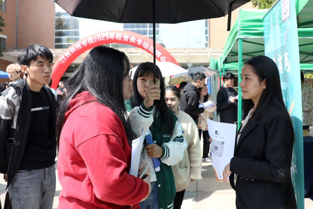 江科网讯(记者 何强江)4月7日下午,由管理学院、财经学院联合组织的江西科技学院2023年经管类专场招聘会在J1栋正门广场举办。此次专场招聘旨在帮助毕业生克服严峻就业形势的不利影响,搭建有效的双向选择平台,更好地帮助学生进行职业选择与生涯规划。