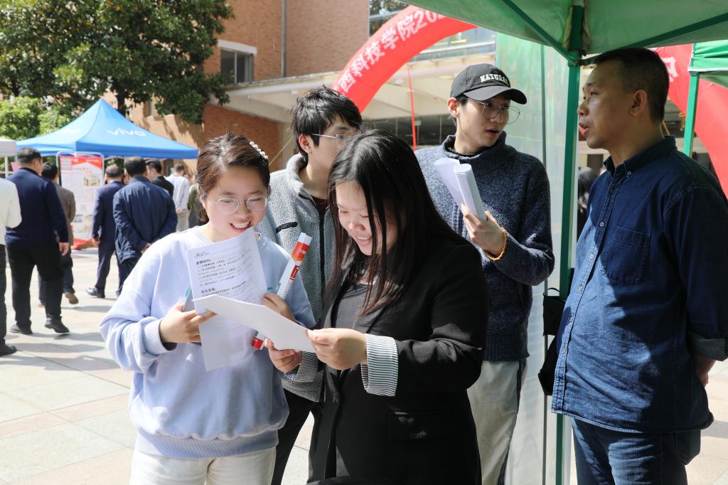 当天,校党委副书记、副校长闵桂林,副校长陈辉来到招聘现场,并与来校招聘的企业代表交流。招聘会现场,各公司展位前咨询、应聘的学生络绎不绝,企业招聘人员热情而细致地向同学们介绍企业情况。整个招聘会持续近三个小时,部分学生与企业达成初步的就业实习意向。此次招聘会不仅面向即将走上工作岗位的大四学生,不少大二、大三学子也穿梭于招聘摊位,通过与企业沟通交流,明确自己的职业目标,找准自我定位,为个人就业发展奠定良好基础。过程中同学们昂扬向上、信心十足的精神面貌和扎实过硬的专业素养给用人单位留下深刻印象。