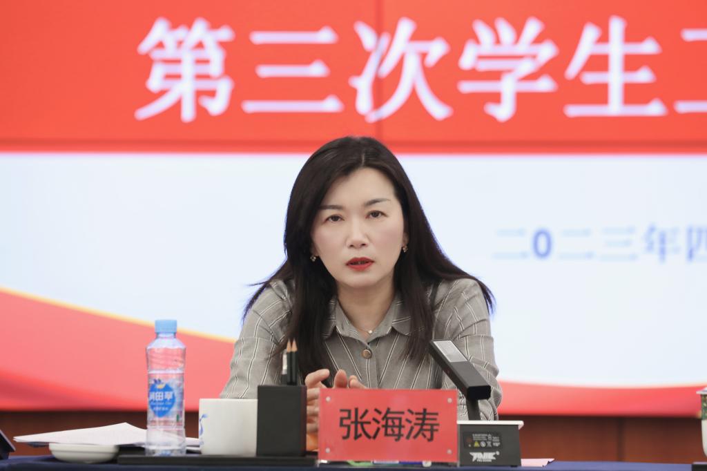 学生工作关系到人才培养和教育质量,关系到学生成长成才,关系到学校发展和社会声誉,并最终影响到学校的竞争能力和可持续发展。对此,张海涛校长就进一步做好我校学生工作强调三点意见。一是审视学生工作高站位。学生管理工作归根到底也是育人工作和学生成长成才工作,要服务于应用型人才培养。学生工作队伍要加强学习,提升自己的品行和操守、视野和境界、能力和水平。二是聚焦问题解决高质量。学生工作要和学校发展密切结合,针对工作过程中出现的问题要及时办结不拖拉,要抓工作实效、工作管理,做到沟通理解到位、督促执行到位、监管反馈到位。三是紧扣工作推进高品质。工作要有层次性,重点工作大力抓,日常工作统筹抓,工作要有成效,要在工作中不断提炼、不断提升、不断成长。工作要有方法,要抓工作切入,抓工作要点、抓工作评判。她希望大家强化责任意识,将学生工作做实做细,坚持问题导向,树立底线思维,深化协调配合,形成齐抓共管、全员育人的工作局面。