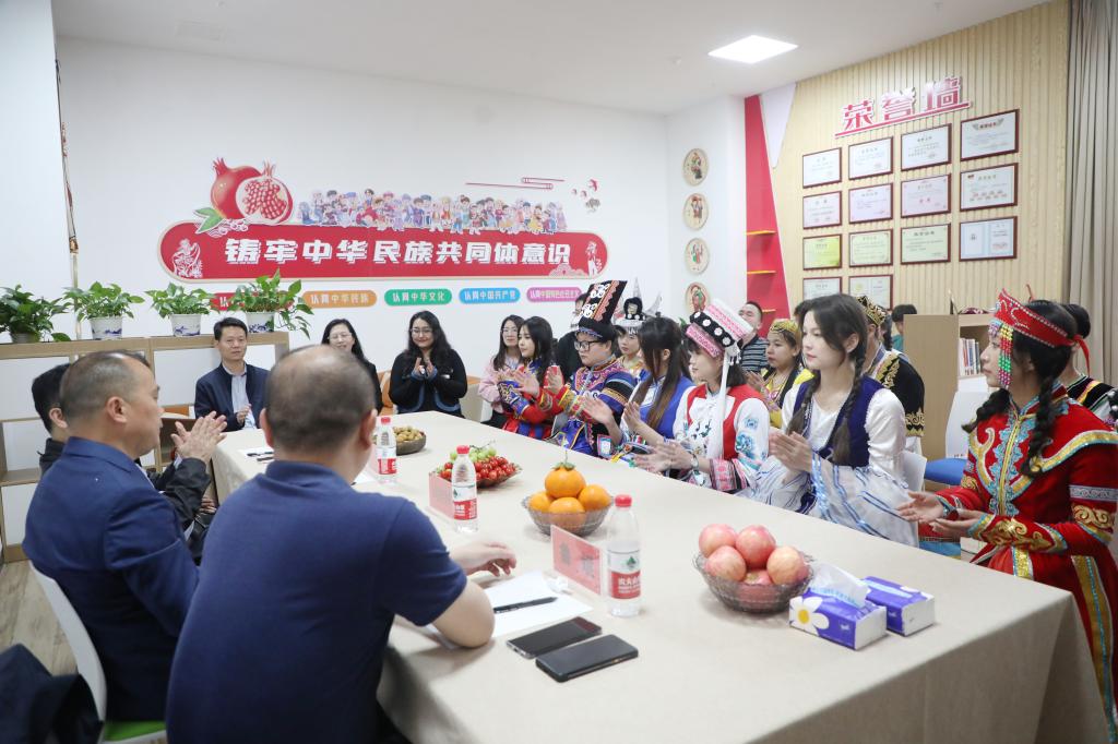 在喜庆的礼花和热烈的掌声中,“石榴籽之家”辅导员工作室正式成立,邓弘书记、闵桂林副校长一同为工作室揭牌。工作室主持人米拉迪力·麦麦提阿伍拉在致辞中表示,“石榴籽之家”辅导员工作室是阵地、是机遇,更是奉献,它将为全校各民族学生提供思想、学习、文化提升和交流的家园,为少数民族教师向职业化、专业化发展提供空间。下一步,工作室全体成员将紧跟学校步伐,团结协作、奋力进取做好民族团结进步教育工作,加强各民族师生交往、交流、交融,促进各民族像石榴籽一样“紧紧抱在一起”。