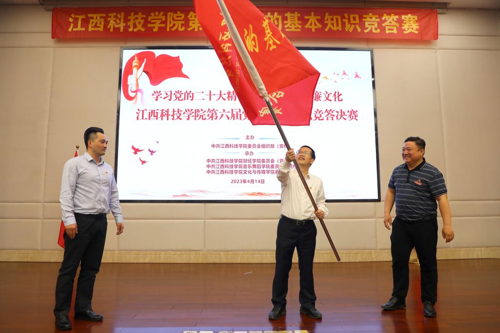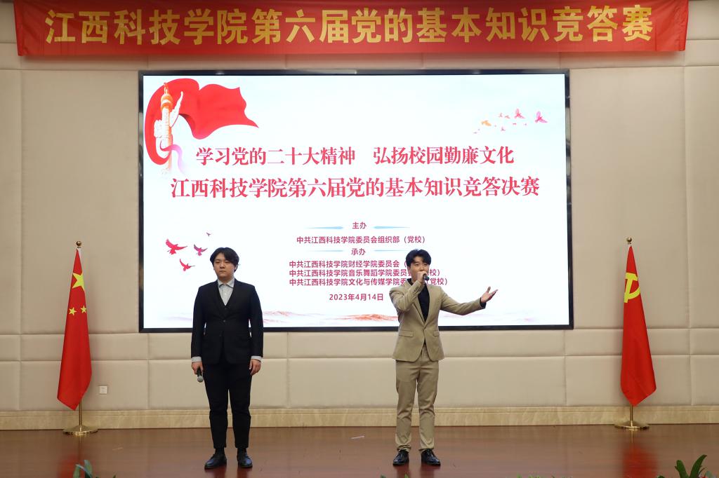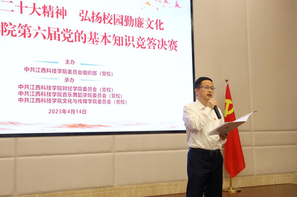 江科网讯(记者 何强江 通讯员 魏芳)4月14日下午,“学习党的二十大精神,弘扬校园勤廉文化”第六届党的基本知识竞答赛决赛在行政南一楼会议室举行。校党委书记邓弘,校党委副书记、副校长闵桂林,校党委副书记、纪委书记夏拥华出席活动。宣传部、组织部等部门负责同志,各学院党委(总支)书记、专职副书记、师生代表到场观赛。