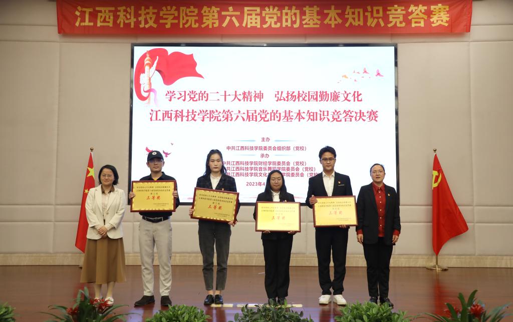 竞答赛决赛中,选手们精神饱满,沉着答题,展现良好的精神风貌。现场高潮迭起、精彩纷呈,经过紧张激烈、扣人心弦的比拼,最终艺术设计学院获教工组一等奖,财经学院获教工组二等奖,教育学院、马克思主义学院获教工组三等奖;文化与传媒学院获学生组一等奖,外国语学院获学生组二等奖,音乐舞蹈学院、管理学院获学生组三等奖。八支获奖代表队的指导老师获评优秀指导老师。