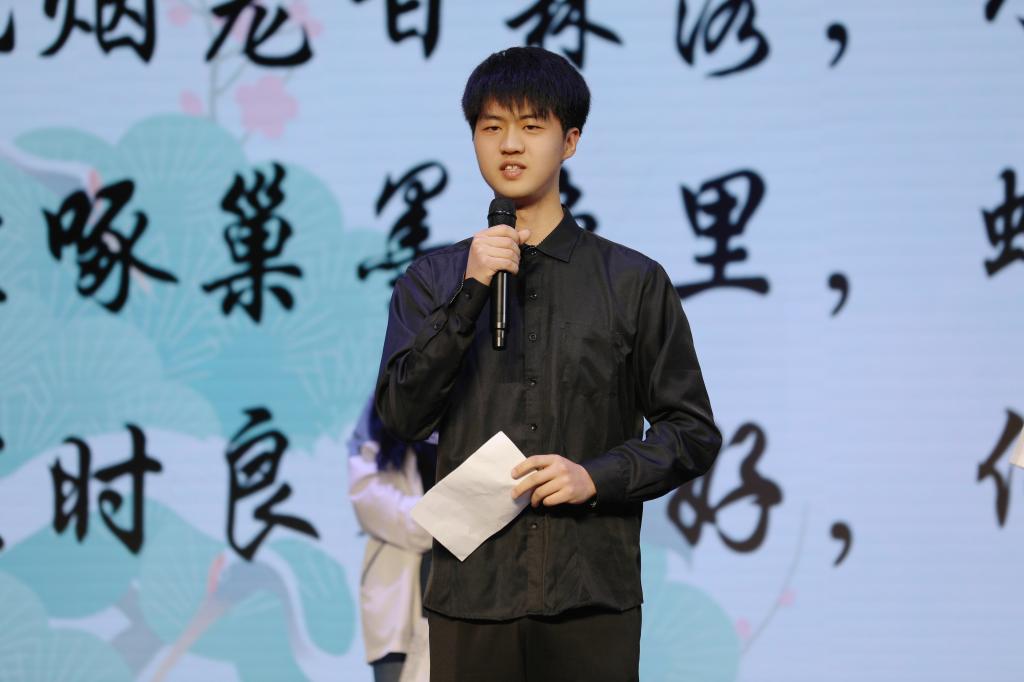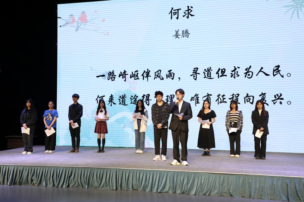《周南·关雎》《短歌行》《将进酒》《水调歌头·明月几时有》《可爱的中国》《中国人从此站起来了》……从秦汉到唐宋,从五四运动到新中国成立,从建党百年到党的二十大,同学们或慷慨激昂、或热情洋溢、或意气风发,用声情并茂的朗诵带领现场师生感受中华诗词文化的独特魅力,同时也表达对家国的热爱和对党的赤诚情怀。“我们旭日文学社的社员现场朗诵了《百强路,强党路》《颂歌献给党,礼赞二十大》两首原创诗歌。”旭日文学社的符银银同学表示:“这次活动更加激起了社员们对诗歌、对文学的创作热情,非常期待下一届谷雨诗会。”