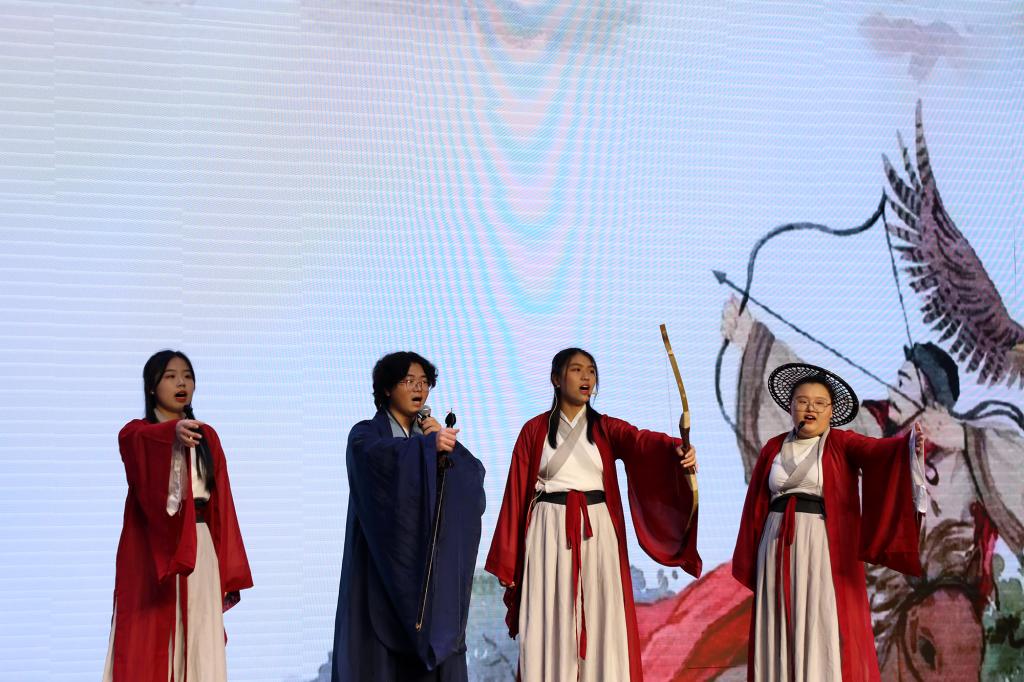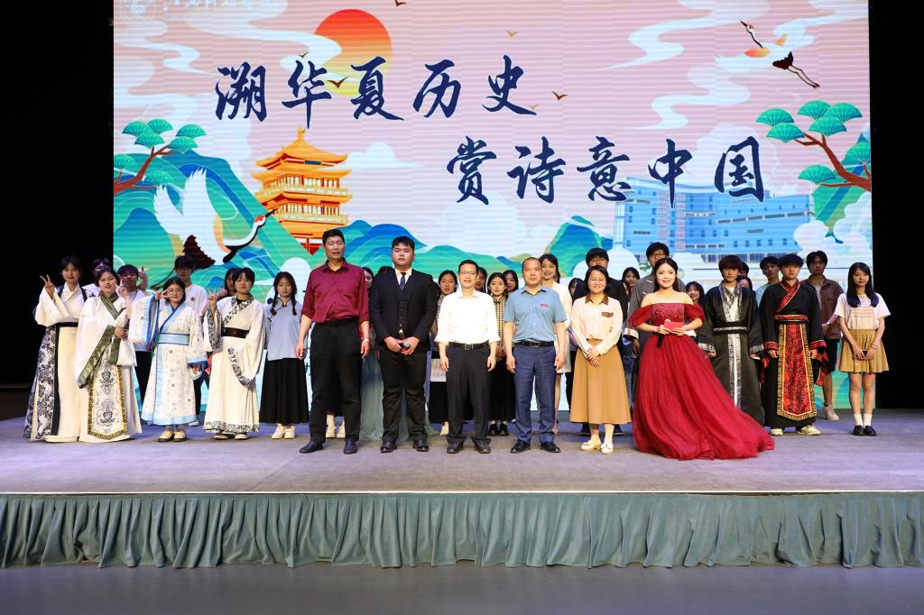 校党委书记邓弘、校党委副书记、副校长闵桂林,校党委副书记夏拥华,宣传部、学工处、校团委、学生资助管理中心、协同创新中心等部门负责人,各学院党委书记、专职副书记(团委书记)与来自全校的百余名文学爱好师生欢聚一堂,赋诗作文吟诵,相互交流创作体会。