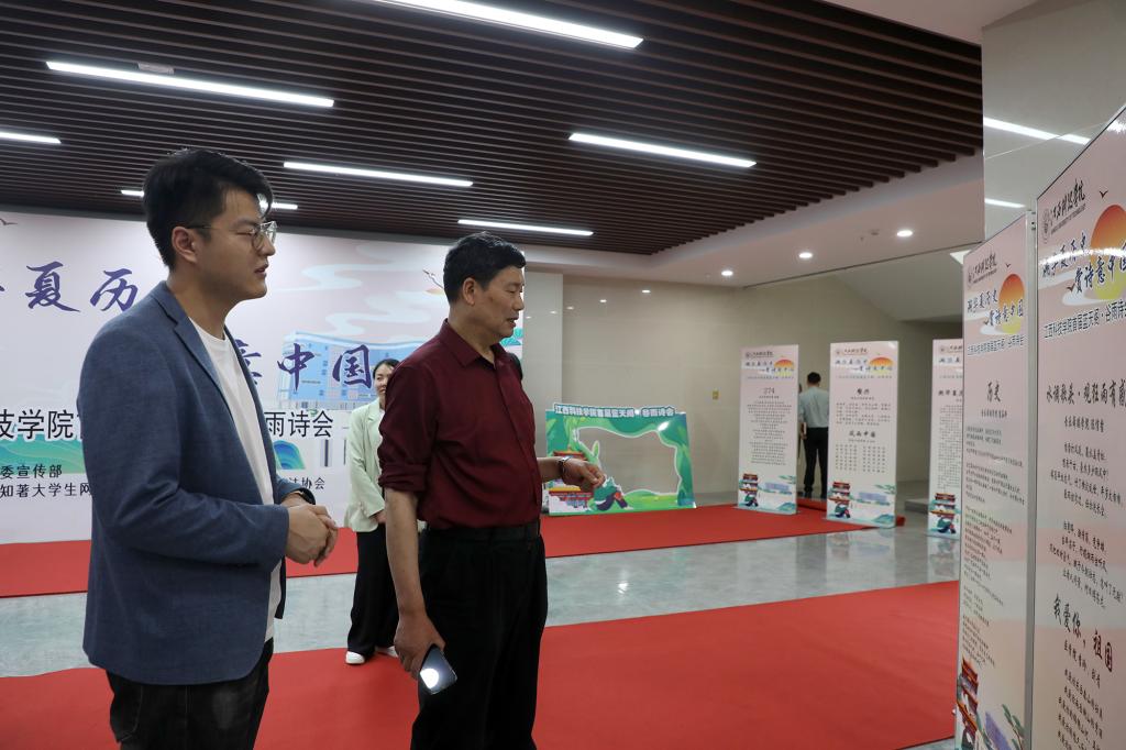 “……泛舟西湖眺长城,尤赞今夕好景程。燃燃初心春意盎,百年共青有此章。”“……春色正扬,山川异域,风月同天。满赞华夏儿女志,探前路,破长风。躬逢盛世,幸甚至哉。”“谷雨终霜芳菲庆,春风解寒新芽迎。雾沉烟笼甘霖落,水跃珠滚新叶鸣……”活动选出10篇优秀原创作品并邀请创作者现场进行诵读和分享。五位嘉宾老师分别就10位同学的诗歌进行点评,并就诗歌创作、朗读技巧等进行解读和交流。“活动现场气氛非常活跃。尤其是以‘江’‘西’‘科’‘技’‘学’‘院’为六个令牌字的飞花令游戏互动受到师生的热情参与。”活动指导老师何钰馨表示,这次谷雨诗会亦是一堂沉浸式思政课,同学们在朗诵和创作诗歌的同时,对相关背景史实有更加深刻的了解和理解,在参与活动的过程中学出实效,悟出心得。
