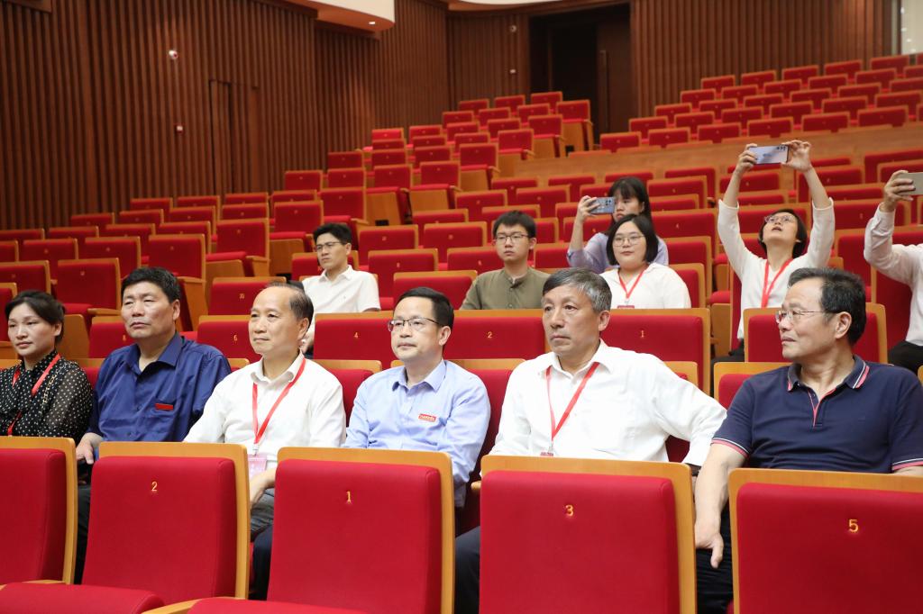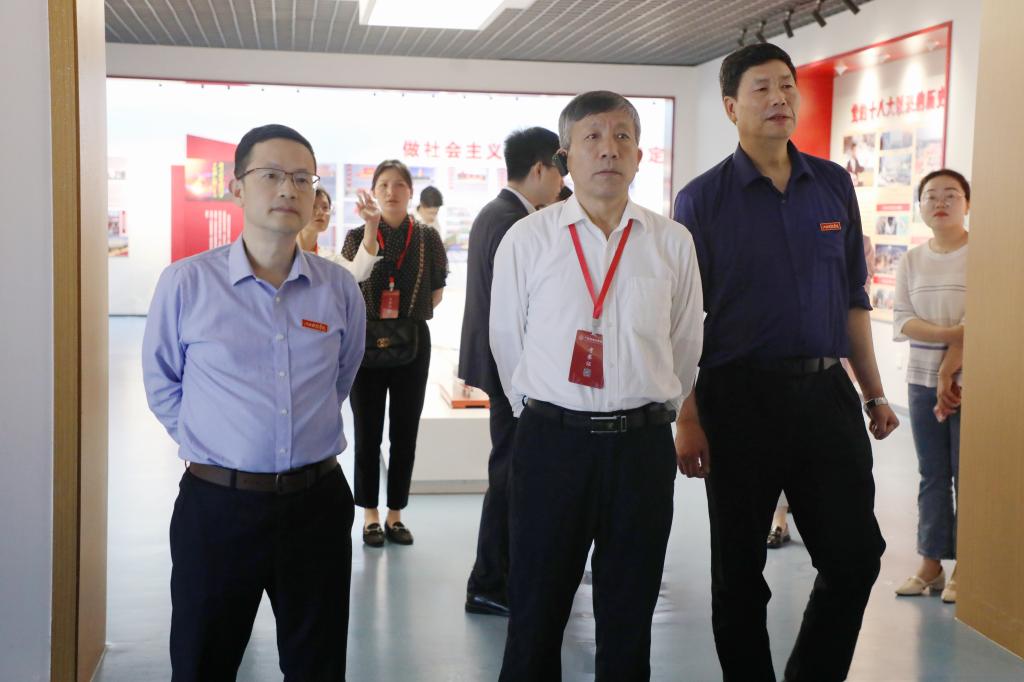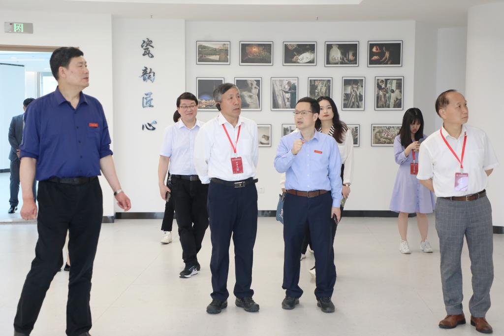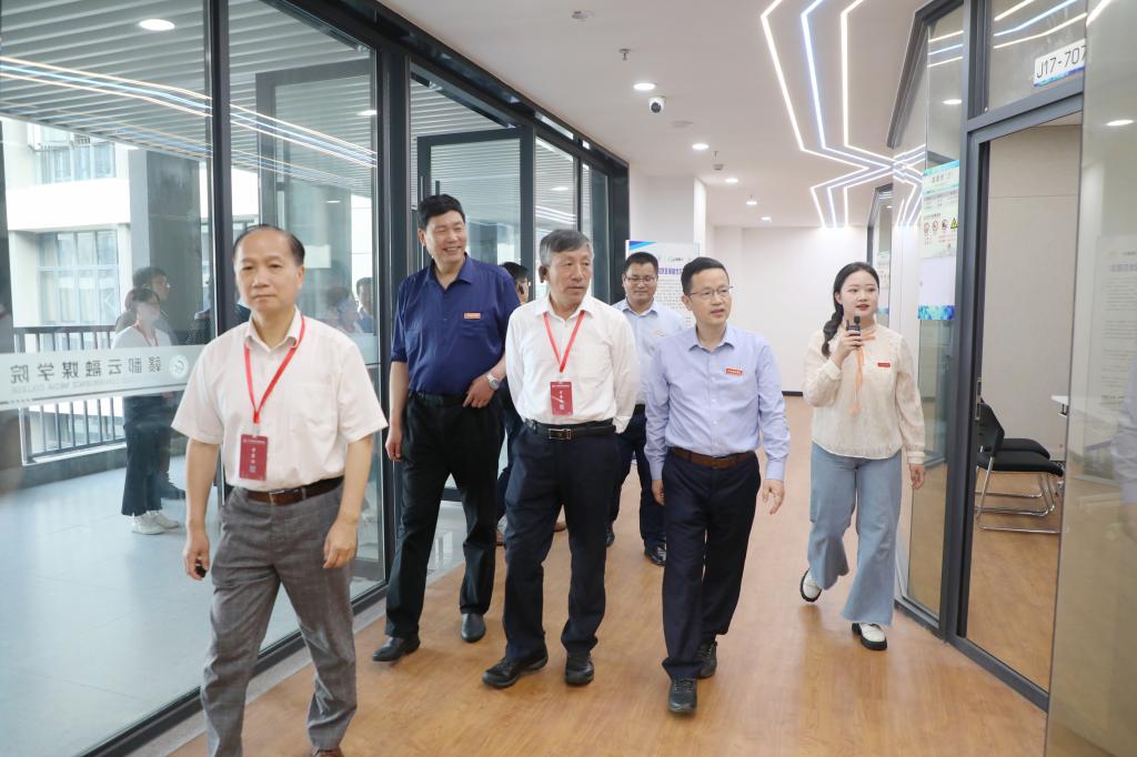 座谈会前,赵康会长一行在邓弘书记、夏拥华副书记的陪同下,先后来到文化与传媒学院赣鄱云融媒学院、江科云智慧融媒直播基地、映山红剧场、湖畔艺术中心、大学生思政基地、求真音乐厅、综合运动馆进行实地参观。