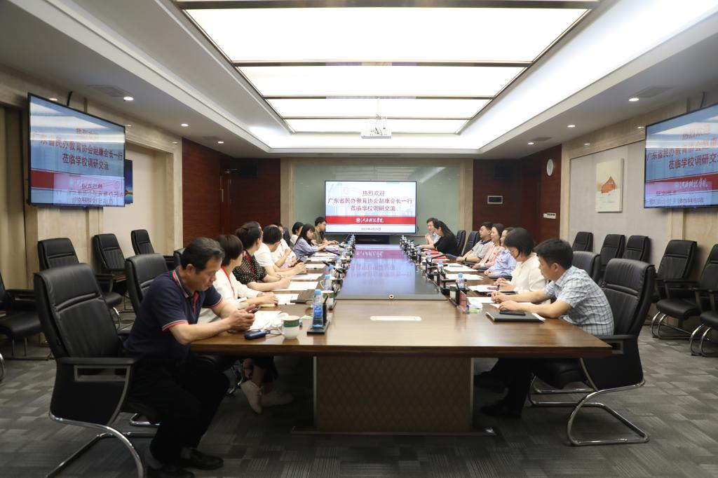 江科网讯(记者 刘莹)4月20日下午,广东省民办教育协会会长赵康一行来我校调研交流,受到校党委书记邓弘、校党委副书记夏拥华的热烈欢迎。双方在行政南一楼第三会议室开展座谈会。广东省民办教育协会常务副会长张耀荣、广东省教育研究院民办教育研究中心原副主任李文章、广东省民办教育协会副秘书长朱祖胜、广东亚视演艺职业学院校办主任苏小乔;江西省民办教育协会秘书长熊明放出席会议。参加会议的还有广东省民办教育协会办公室干事,江西省民办教育协会秘书,以及我校校(党)办、宣传部、人事处、科研处、教务处、马克思主义学院负责人。