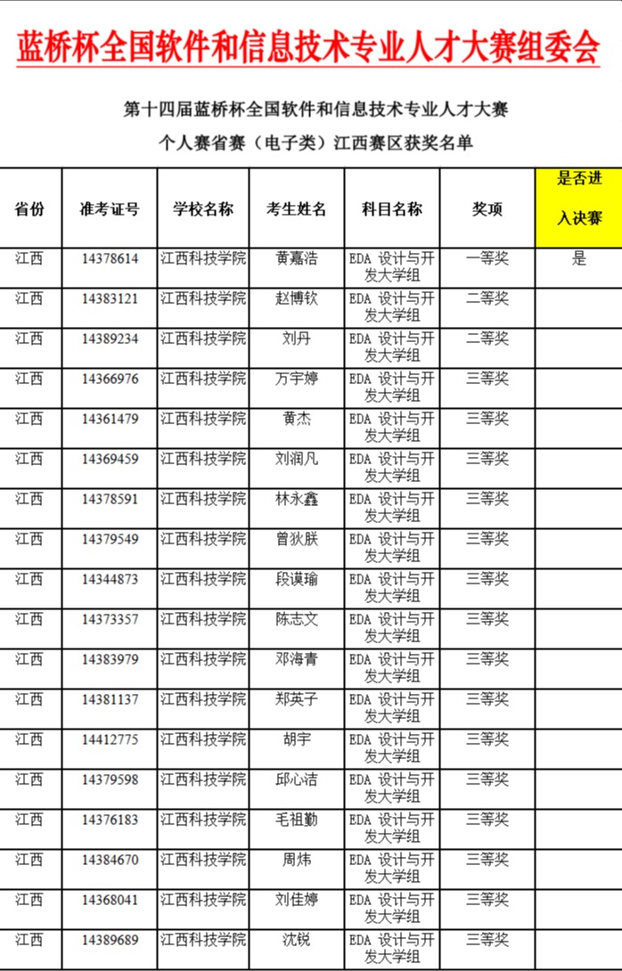 江科网讯(通讯员 张志龙)近日,第十四届“蓝桥杯”全国软件和信息技术专业人才大赛——个人赛省赛结果公布。我校88名优秀学子经过刻苦的训练、持续不懈的努力,在江西赛区中脱颖而出,喜获佳绩。其中,省级一等奖13名、省级二等奖31名、省级三等奖44名。其中,获得省级一等奖的13名同学将代表学校参加2023年6月10日举办的第十四届蓝桥杯全国总决赛。