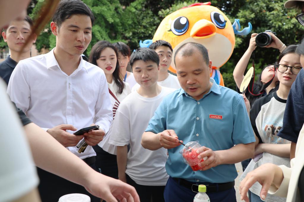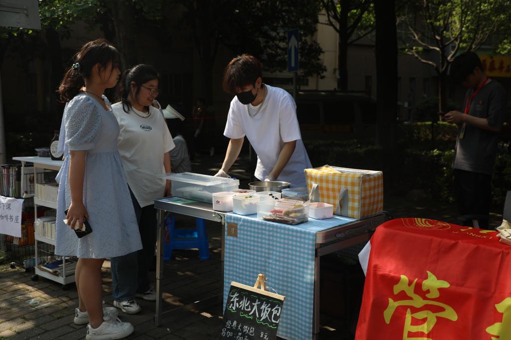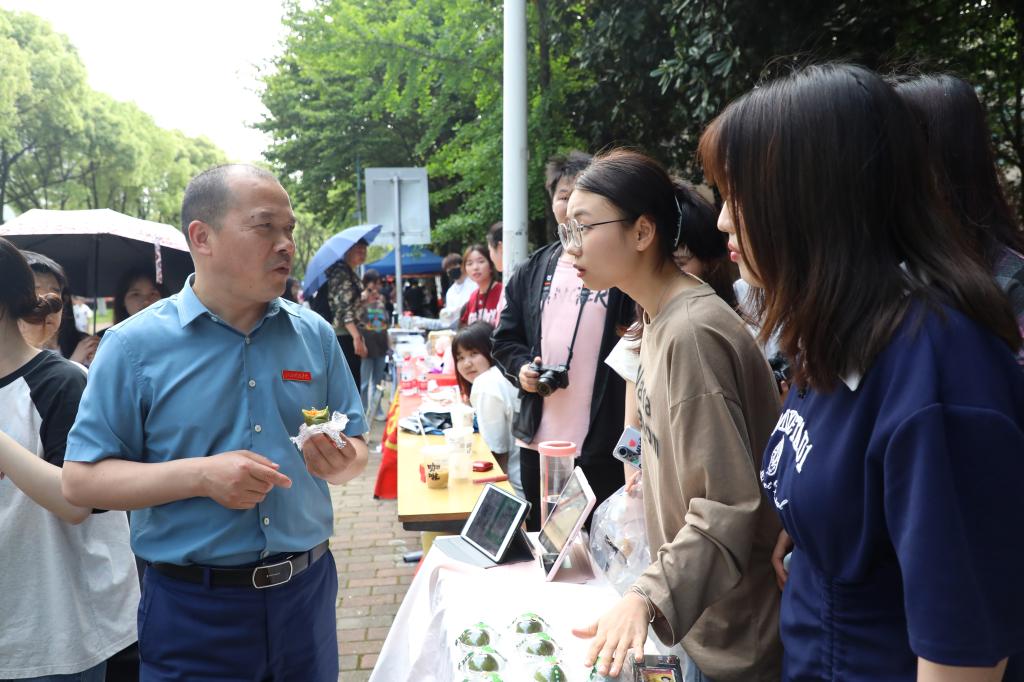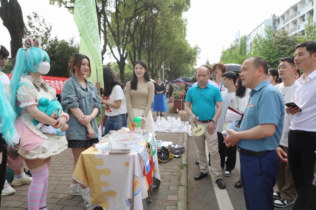 校党委副书记、副校长闵桂林在宣传部、学工处、招就处、团委相关负责人的陪同下,来到现场参加活动。“你们这些商品是自己亲手设计制作的吗?”“有没有计算过今天的成本与营利,是亏本了还是赚了?”“传统文化摊位很好,非常有特色!”“赶集”过程中,闵桂林副校长与摊主们亲切交谈,认真察看大学生们的文化创意产品,询问各类产品的设计理念、制作工艺等,还现场购买了一些学生的创意作品,并鼓励大学生们要坚定理想信念,敢于创新,大胆实践,在创新实践中增长智慧才干,用青春书写无愧于时代的华彩篇章。