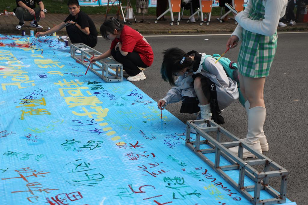 随着铜锣的敲响,创意集市正式“开市”。唱歌、跳舞、走秀……街中央的开场表演引得观众们驻足观望,现场欢呼声、掌声不断,气氛十分热烈。活动共分为:摊位分学院展区、社团互动区、创意展区、公益区四个区域。在学院展区,来自不同学院的小摊主们展示、出售自己的创意产品与闲置物品,精致独特的个性化摊位布置,引来同学们的争相抢购;在社团互动展区,社团们展示出各自优秀成果作品,并为观众们带来精彩的才艺表演;在创意展区,不仅有能让同学们接触到学校最新鲜、最全面创新创业成果的展品,还有由学生自主设计制作的手工类、文化创作类、科研类作品,充分体现了我校实践育人、科研育人成果;在公益区,免费量血压、健康咨询、闲置物品公益赠授等活动展示了江科学子甘于奉献、乐于助人的优良传统美德,也为同学们提供了参与公益的便捷通道。此外,创意市集街头还设置了涂鸦板和签名墙,吸引了不少同学前来参与打卡。