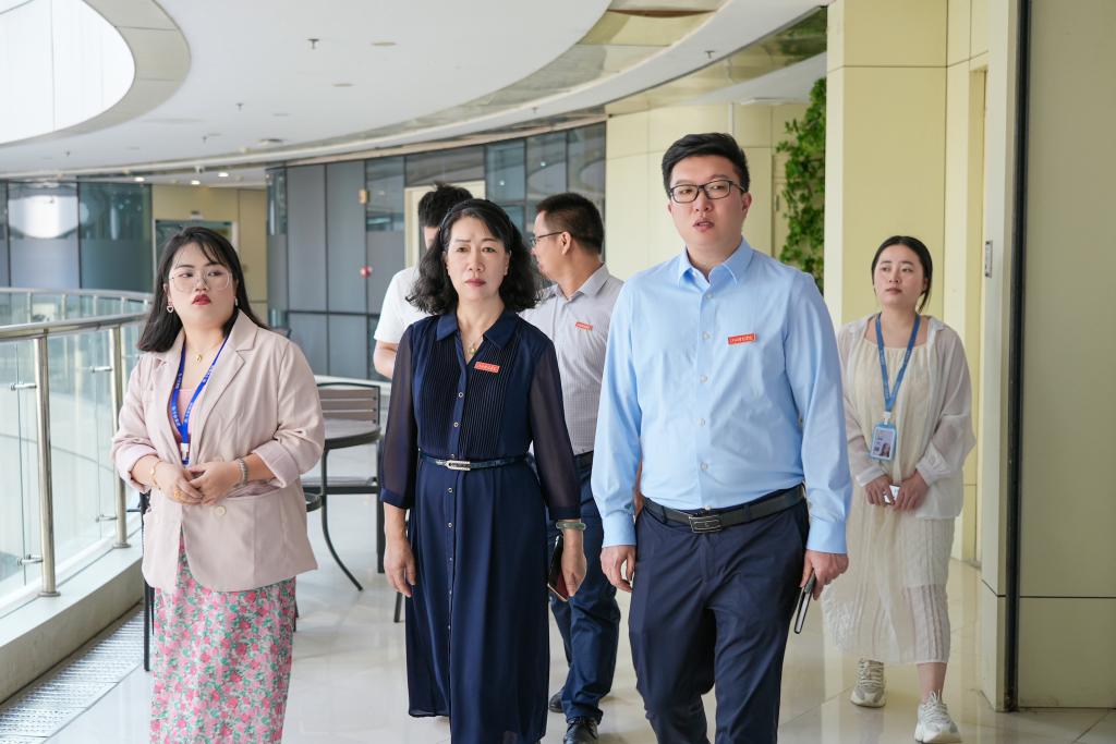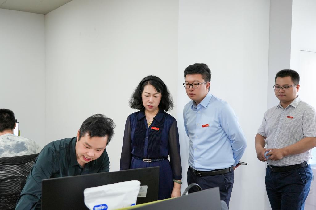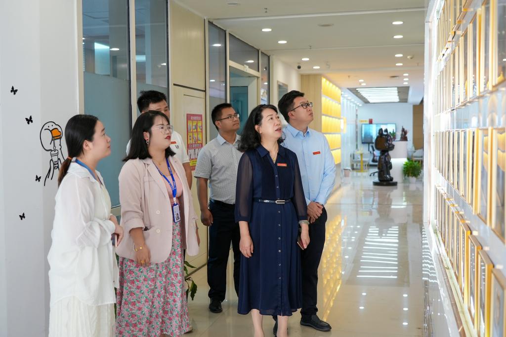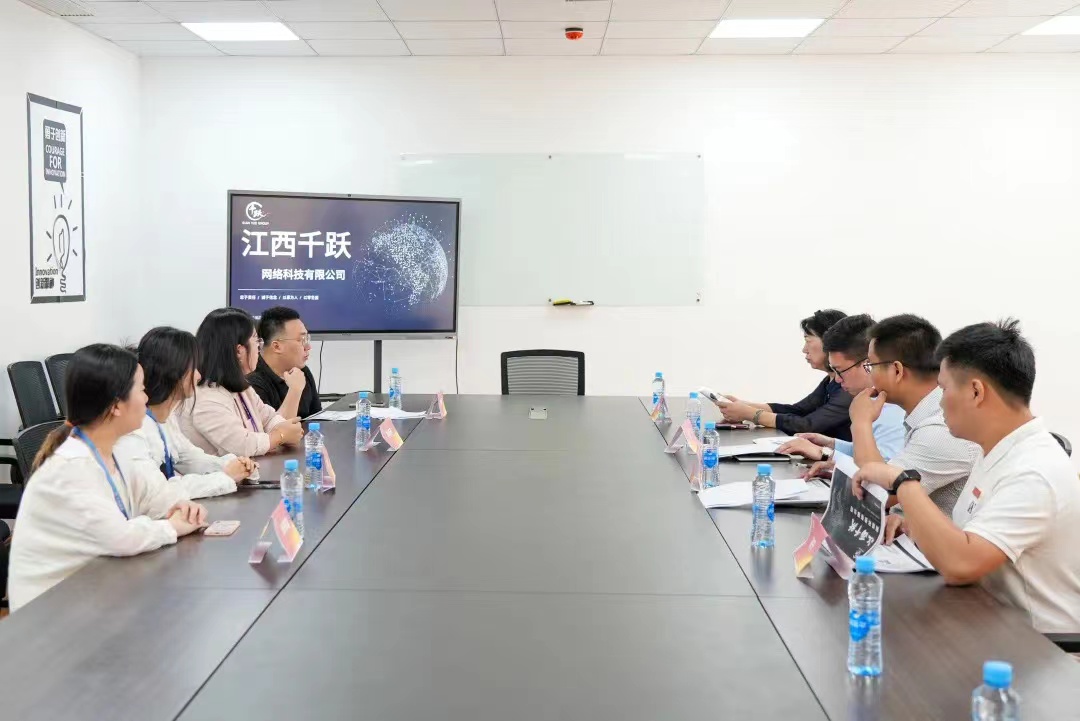 在江西千跃网络科技有限公司总经理谢康鑫、人力资源经理姚莉莎、人事雷亿舒及相关工作人员的陪同下,林素君副校长一行参观了企业文化墙、办公区、直播间等区域。