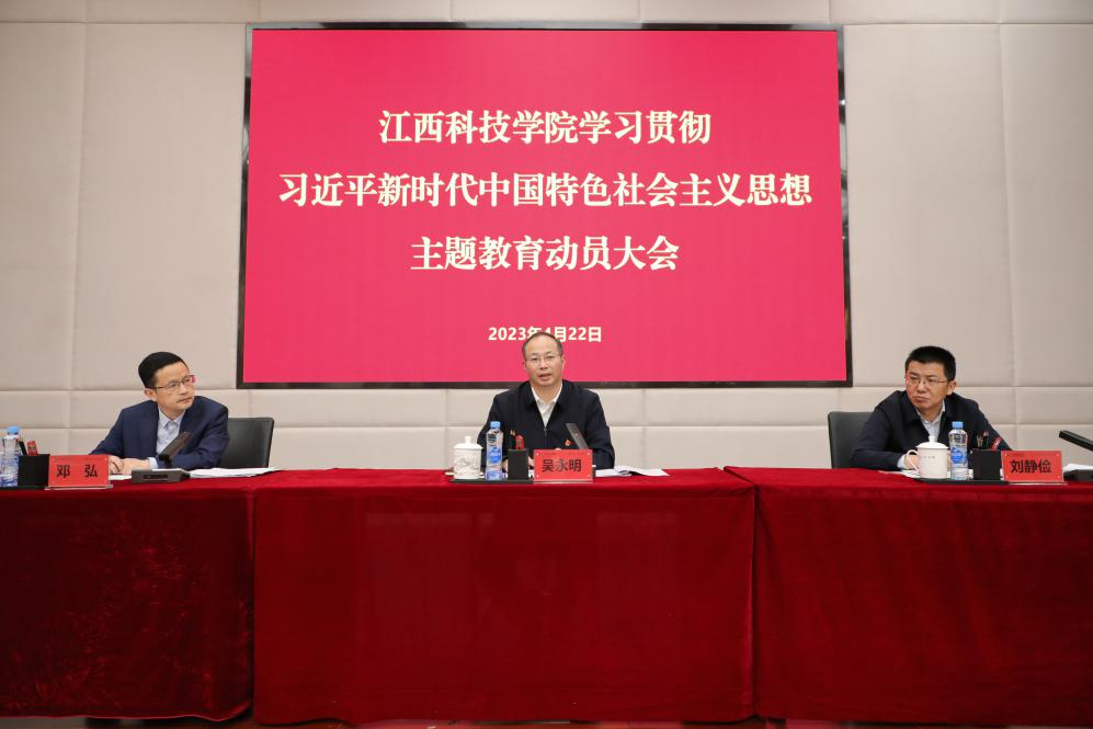 省委教育工委书记、省教育厅厅长、委厅主题教育领导小组组长、江西科技学院挂点联系领导吴永明到会指导并讲话。省教育评估监测研究院党委书记、委厅主题教育办副主任、实践督导组组长刘静俭出席会议。校党委书记、主题教育领导小组组长邓弘主持会议并作动员部署讲话。委厅主题教育办实践督导组成员余锡祥、陶卫,省委教育工委研究室副主任、省教育厅政策法规处副处长刘科荣,省委厅发展规划处(社会力量办学管理处)干部胡云龙出席会议。学校创办人于果董事长、校长张海涛等全体在家校领导参加会议。