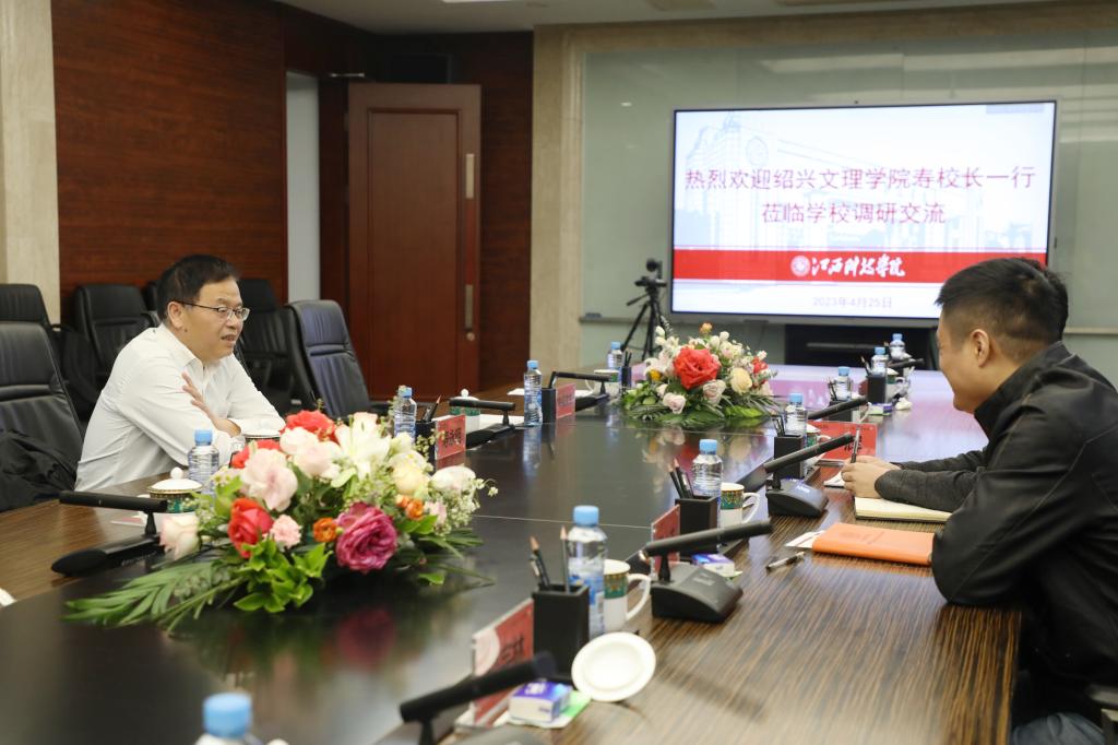 江科网讯(记者 何强江 刘莹)4月24日至25日,绍兴文理学院副校长、教育部本科教学评估专家寿永明一行来我校调研交流,受到校长张海涛与副校长周冰冰、陈辉的热烈欢迎。