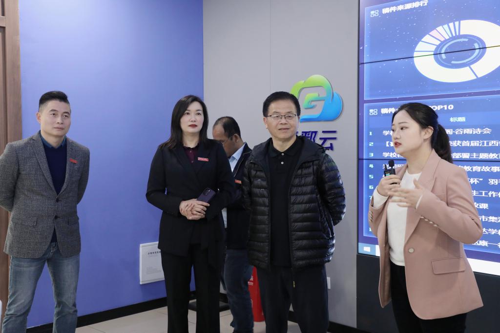 24日下午,寿永明副校长一行在张海涛校长、周冰冰副校长、陈辉副校长等校领导的陪同下,先后来到文化与传媒学院映山红剧场、赣鄱云融媒学院、江科云智慧融媒全景交互式演播室、江科云智慧融媒直播基地、湖畔艺术中心进行实地参观,认真听取相关介绍。其间,寿永明副校长还饶有兴致地在演播室进行体验,与正在举行视觉传达专业毕业设计展的同学进行亲切交流,对我校先进的教育理念和现代化的教学条件予以赞赏。