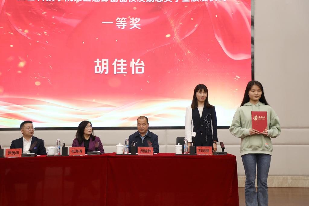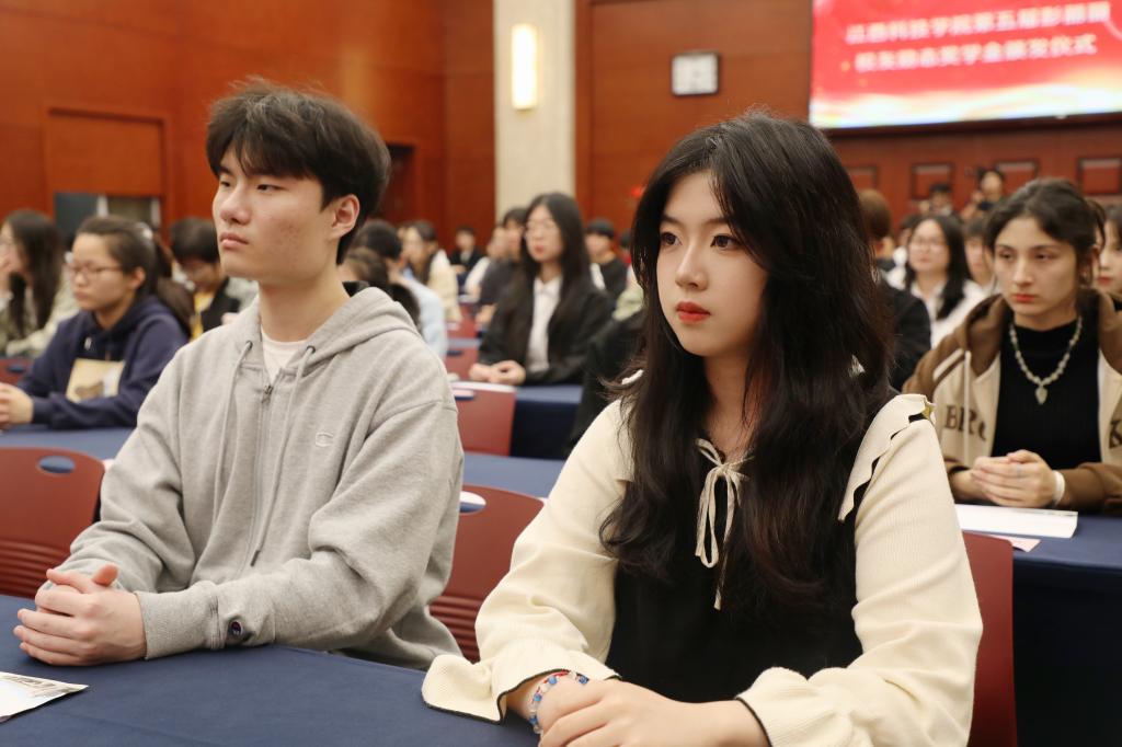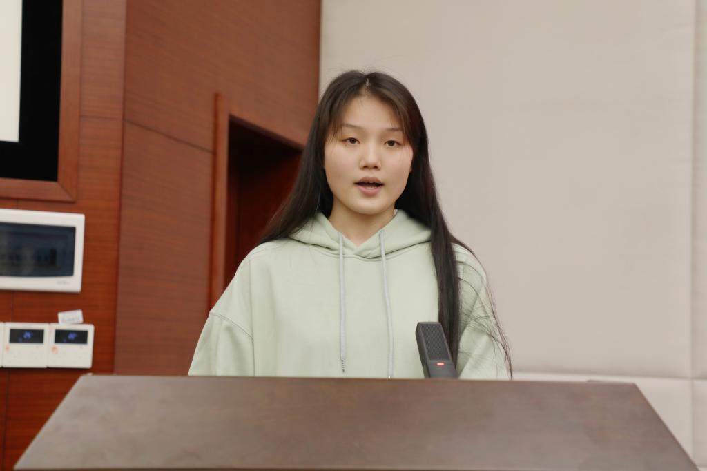 获奖学生代表胡佳怡、赵帅分别发言,向学校的培育以及优秀校友的捐助表示最诚挚的谢意,并表示将会继续秉持着感恩之心,再接再厉,提高自身综合素质,争做堪当大任的新时代青年。