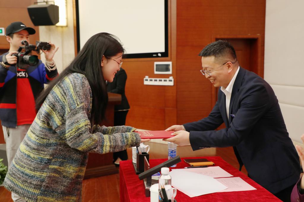 会上,张海涛校长为尹茂华、彭丽丽校友颁发荣誉证书和捐赠证书,并亲切合影留念。闵桂林副校长宣读“彭丽丽校友励志奖学金”与“尹茂华校友励志奖学金”表彰决定。出席领导嘉宾共同为获奖学生颁发荣誉证书与奖学金。