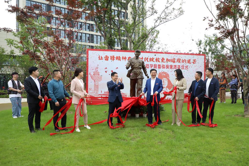 张海涛校长在揭幕仪式致辞中表示,60年来,雷锋的名字家喻户晓,雷锋的事迹深入人心,雷锋精神滋养着一代代中华儿女的心灵。无论时代如何变迁,雷锋精神永不过时、永久流传。她现场倡议,从自己做起,从领导干部做起,全体师生做雷锋精神的坚定信仰者,将学习雷锋精神贯穿于思想政治教育、日常行为习惯养成、专业实习、择业就业创业全过程,做到真学入脑、真懂入心、真用入行;做雷锋精神的创新传播者,将传播雷锋精神融入日常学习工作中,引导青年学子在志愿服务、“三下乡”等活动中传播雷锋精神、践行雷锋精神,汇聚传承弘扬雷锋精神的青春力量;做雷锋精神的忠实践行者,结合当前主题教育调研任务,深入教室、宿舍、食堂,解决师生急难愁盼问题,维护好师生切身利益,在为师生、为社会服务中寻找人生的价值与意义。