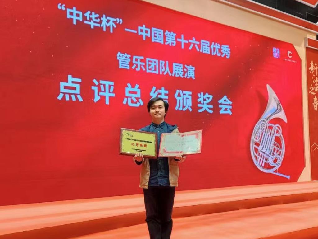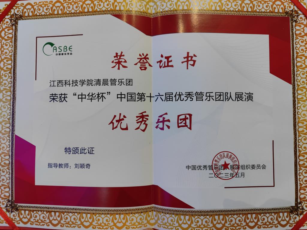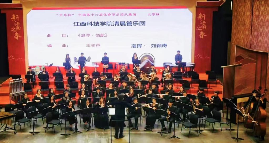 江科网讯(通讯员 刘颖奇 记者 何强江)近日,我校清晨管乐团赴上海九棵树艺术中心参加“中华杯”中国第十六届优秀管乐团队展演”活动,演奏曲目《追寻·领航》,经过层层角逐,最终荣获“优秀乐团”(二等奖),这是我校管乐团自成立以来获得的首个国家级奖项。管乐团领队、指挥刘颖奇老师获得“优秀指导教师”。