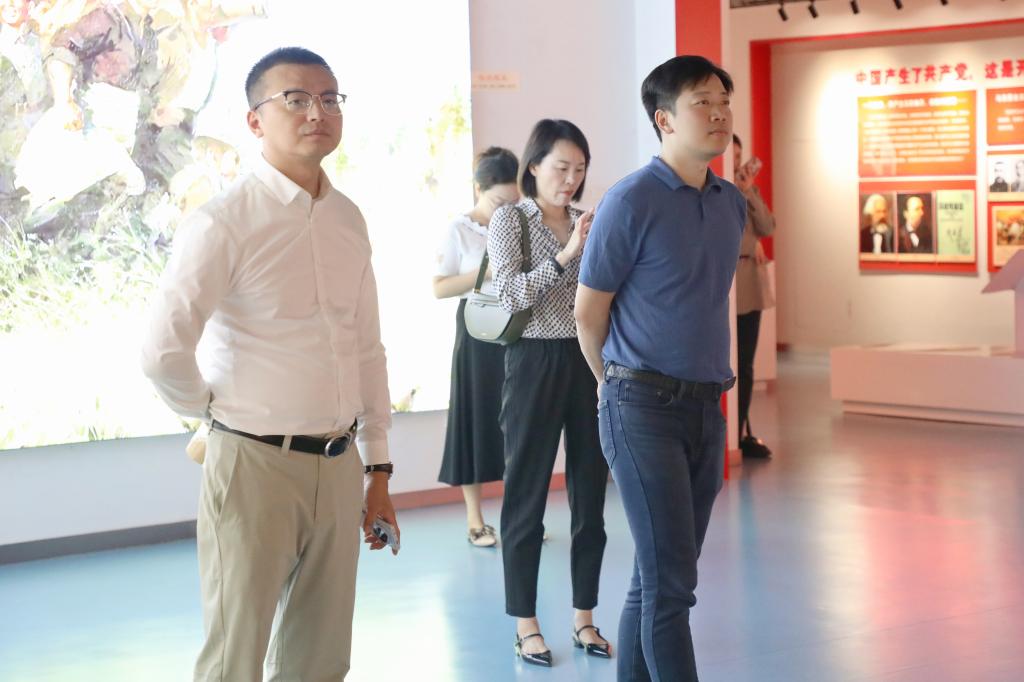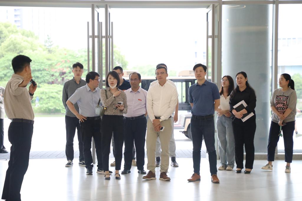 座谈会前,殷明总经理一行在李玮副校长、陈辉副校长的陪同下先后来到文化与传媒学院赣鄱云融媒学院、江科云智慧融媒直播基地、映山红剧场、湖畔艺术中心、大学生思政基地、求真音乐厅、综合运动馆、J18进行实地参观。