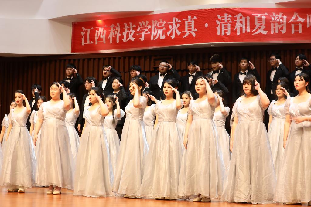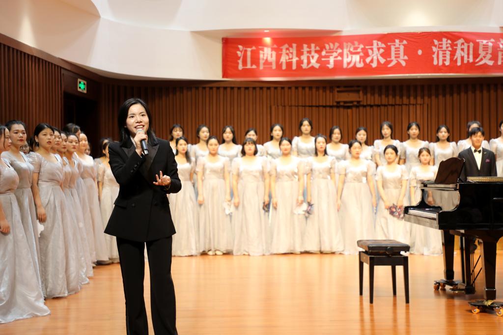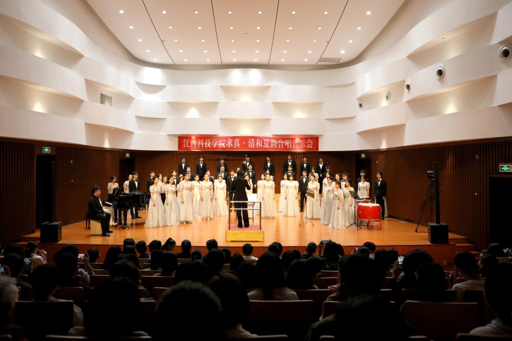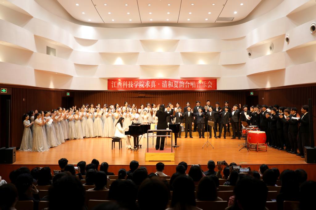 江科网讯(记者 何强江)初夏尤清和,美好亦未歇。今年5月6日,我们迎来立夏。值此万物始茂之际,江西科技学院求真·清和夏韵合唱音乐会如期而至,在学校求真音乐厅精彩上演。当晚,学校创办人于果董事长,校党委书记邓弘,副校长林素君、李玮、周冰冰、陈辉,校党委副书记夏拥华等校领导出席活动。各兄弟院校音乐学院院长、省内合唱指挥家、作曲家、音乐教授等嘉宾到场共享这场音乐盛宴。