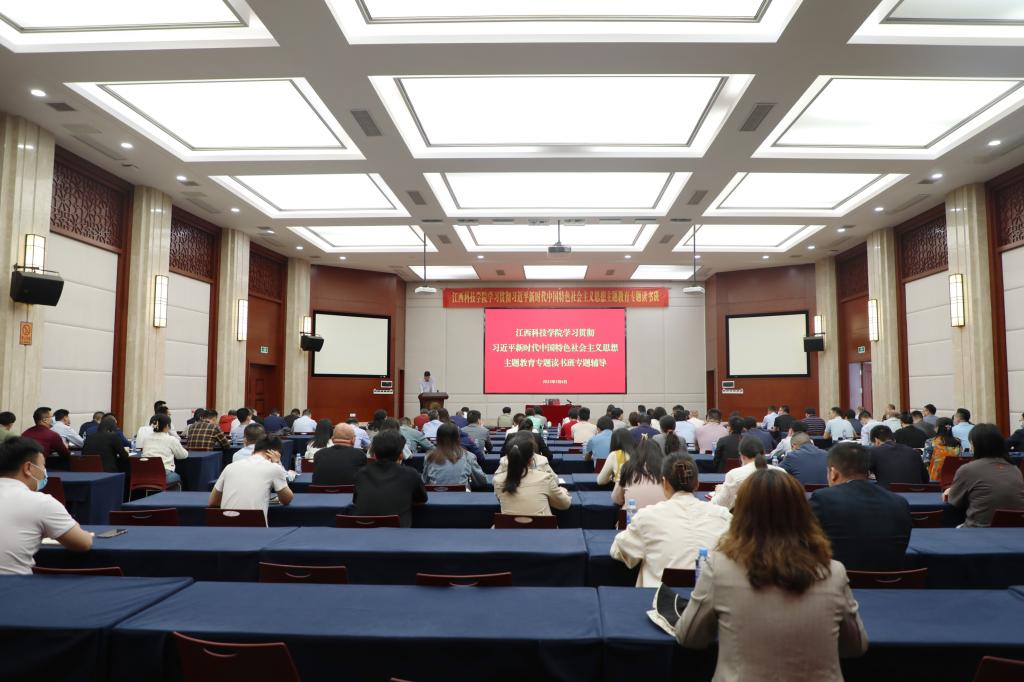 江科网讯(记者 刘莹)5月8日下午,我校在行政南一楼第一会议室举行学习贯彻习近平新时代中国特色社会主义思想主题教育专题读书班第三场辅导报告会。习研中心主任肖中华教授应邀作题为《深刻领悟习近平法治思想的真理伟力》的辅导报告。校党委书记邓弘,副校长林素君,校党委副书记、副校长闵桂林,副校长李玮、周冰冰、陈辉等在家校领导,学校各单位副处级以上干部、各党支部书记,主题教育办公室成员,党外知识分子代表到场聆听。校党委副书记夏拥华主持报告会。